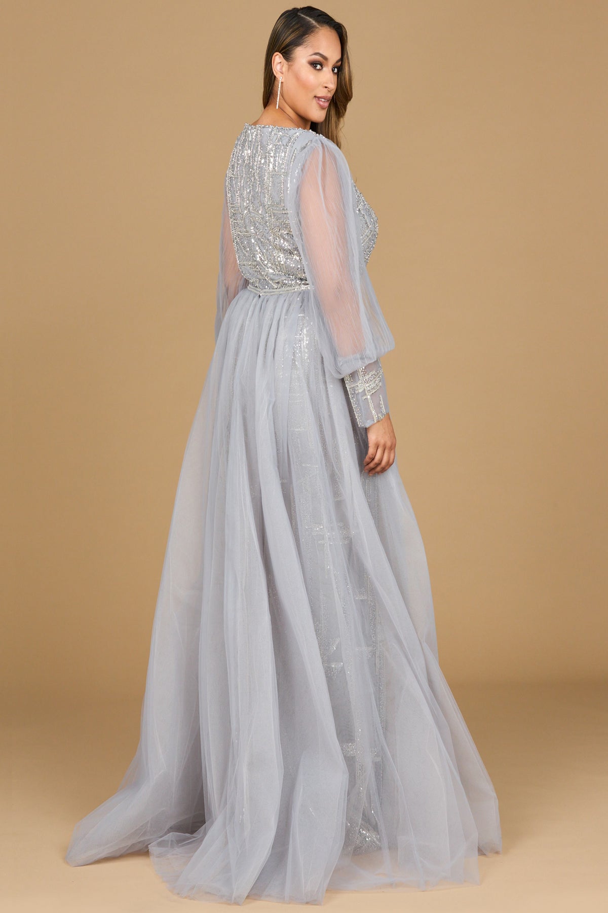 Step into the spotlight with the Lara 29158 by Andrea and Leo, a stunning evening gown designed to celebrate your most memorable moments. Crafted from delicate tulle layered beneath shimmering sequins, this long, fitted dress gracefully sculpts your silhouette while the elegant overskirt adds a touch of drama and movement. The deep V-neckline and long sleeves create a harmonious balance of allure and sophistication, making it an exceptional choice for mother of the bride or any formal evening affair. With a discreet zipper back, this dress ensures both comfort and flawless fit. Embrace the confidence and poise that come with wearing a piece meticulously designed to illuminate every room you enter.