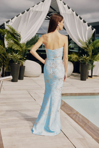 Experience exquisite elegance with the Frascara 4840, a masterfully crafted couture evening gown designed to elevate your presence at any special occasion. This strapless Jacquard dress features a ruched, draped bodice that gently contours your silhouette, while the subtle belt accentuates your waist with refined sophistication. The fit-and-flare skirt gracefully cascades to the floor, creating a timeless look that merges classic charm with modern allure. Inside, the satin lining ensures a smooth, luxurious feel against your skin. With a hidden back zipper completing the flawless design, Frascara offers you a captivating gown that embodies both poise and glamour.