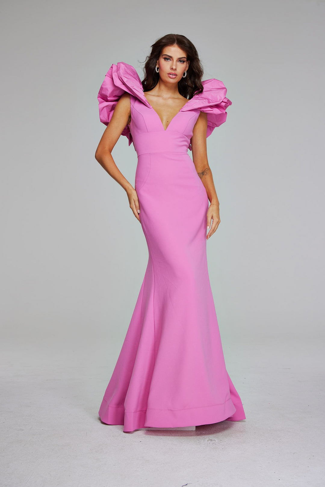 Elevate your evening with the Jovani 40663, a masterpiece from the Fall 2024 collection designed to captivate and complement your silhouette. Crafted in sumptuous crepe, this long, fitted mermaid gown effortlessly sculpts your figure, while delicate ruffles add a dynamic touch of movement and sophistication. The plunging V-neckline and sleeveless design reveal just the right amount of elegance, perfect for making a statement at weddings, special occasions, or glamorous evenings. Embrace refined luxury with a dress that celebrates confidence and grace, ensuring you become the center of attention in any crowd.