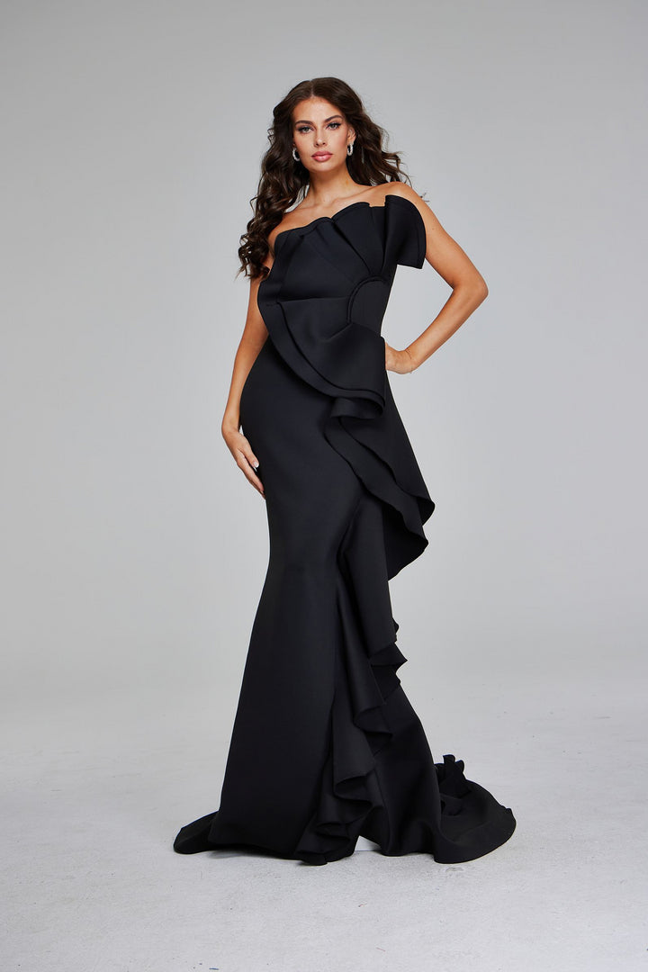 Elevate your evening with the Jovani 42543, a masterful creation from the Fall 2024 collection designed to captivate effortlessly. This long, fitted crepe gown molds gracefully to your silhouette, enhancing your confidence with its sleek one-shoulder neckline and delicate ruffle accents that cascade with refined movement. The subtle train adds a touch of drama as you enter the room, while the discreet back zipper ensures a flawless fit. Perfect for memorable occasions or as a stunning mother of the bride dress, Jovani 42543 envelops you in luxurious comfort and timeless elegance, making every moment unforgettable.