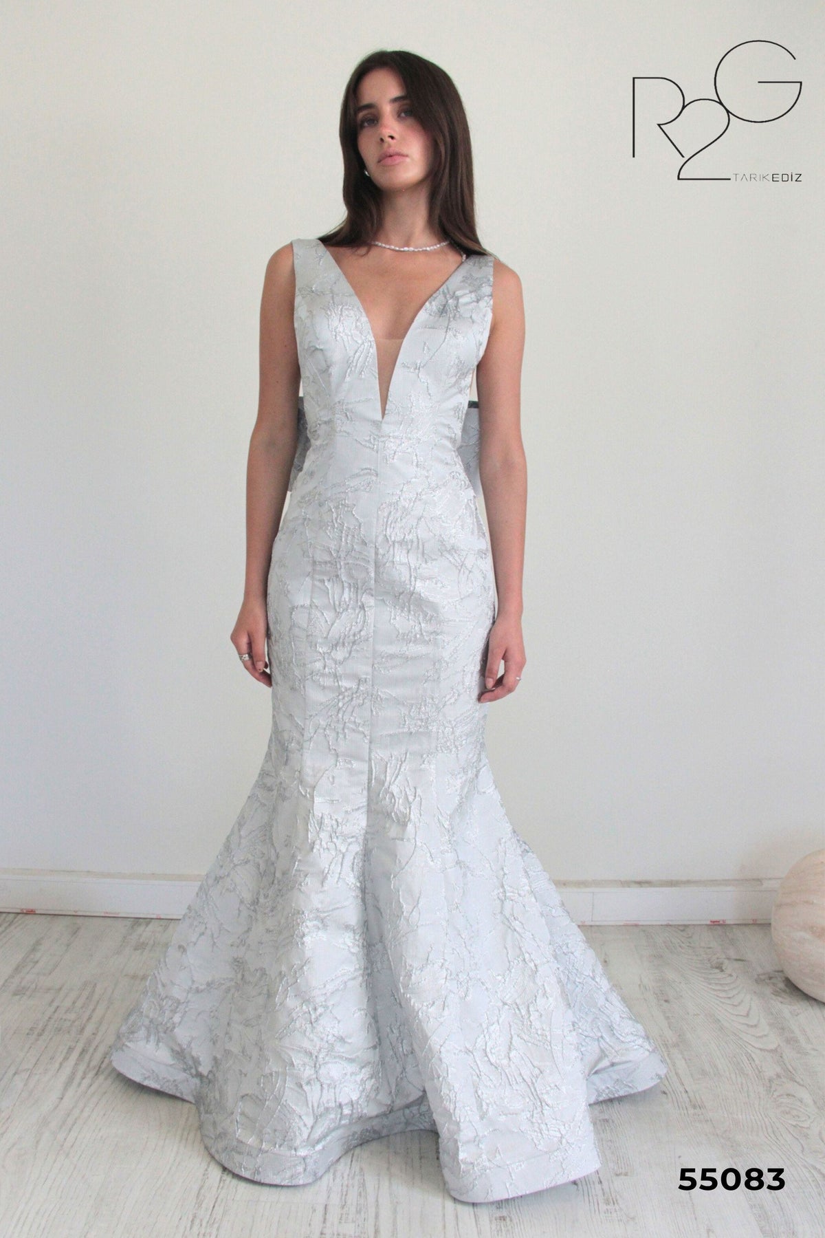 Elevate your evening with the exquisite Tarik Ediz 55083 dress, designed to make a stunning impression. Crafted from sumptuous jacquard, this fitted mermaid gown gracefully hugs your silhouette, exuding elegance with every movement. The enchanting V-neckline and sleeveless design highlight your décolletage, while the low back adds a touch of allure, ensuring you turn heads at any special occasion. A delicate bow detail enhances its charm, making it perfect for creating unforgettable memories. Whether for a gala or a luxurious gathering, this long dress promises to bring out your inner radiance, allowing you to shine brightly like the evening star you are.