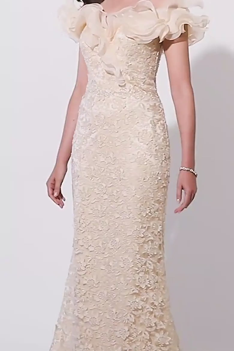 Elevate your presence with the Mon Cheri Montage 119931, a masterful creation designed to captivate at every glance. This long evening dress, fashioned from delicate lace, embraces you with an off-the-shoulder, sleeveless silhouette that reveals a graceful neckline framed by soft ruffles. The intricate craftsmanship highlights your elegance, while the concealed zipper at the back ensures a flawless fit. Perfect for refined occasions or as a timeless choice for the mother of the bride, this gown invites you to indulge in luxurious comfort and poise, making every moment unforgettable and every entrance truly radiant.