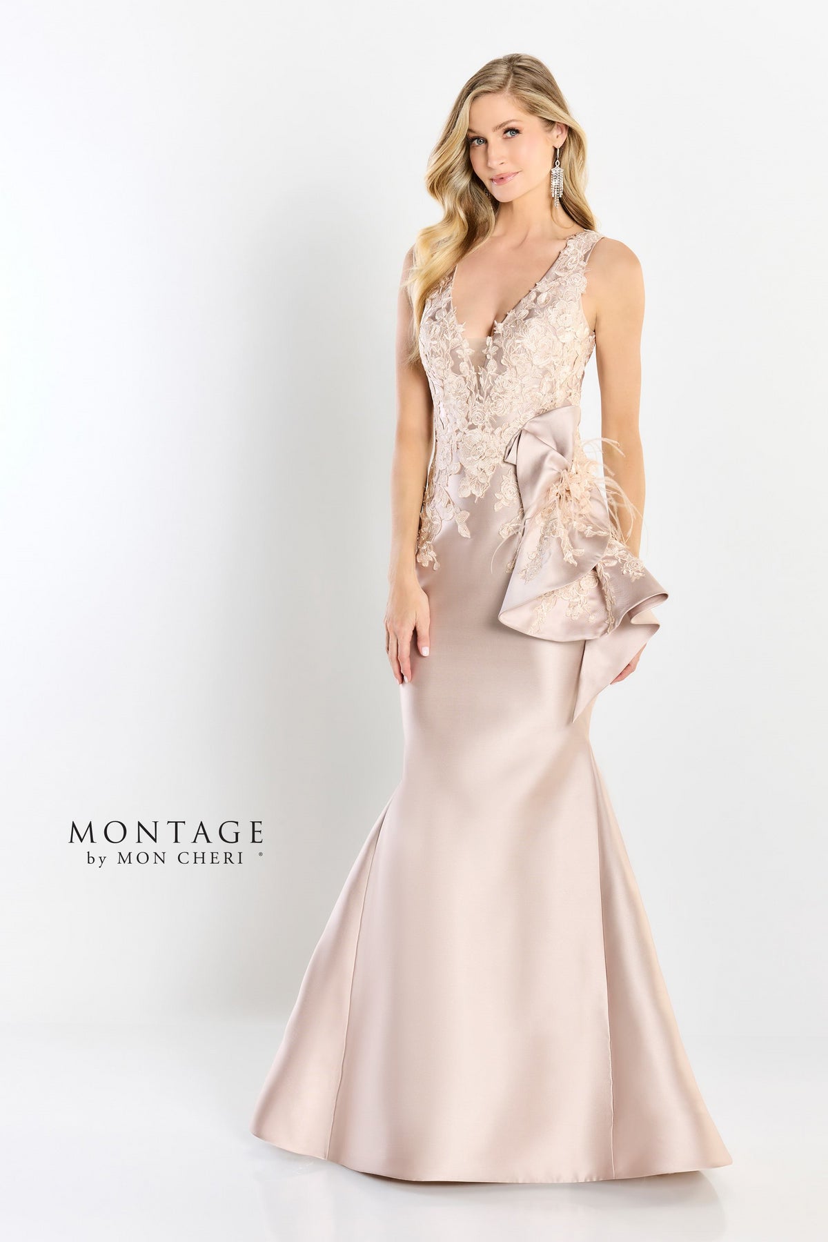 Experience unparalleled elegance with the Mon Cheri Montage M2206, a masterful evening gown designed to captivate. Crafted from lustrous taffeta, this fitted mermaid silhouette gracefully embraces your curves, while intricate embroidery and delicate feather accents add refined texture and depth. The long trumpet skirt flows effortlessly, perfect for commanding attention at mother-of-the-bride events or sophisticated evenings. The flattering V-neckline and slender straps create a timeless allure, complemented by a discreet zipper back for a seamless finish. Revel in the confidence of a gown that embodies luxury and poise, transforming any occasion into an unforgettable celebration of your style.