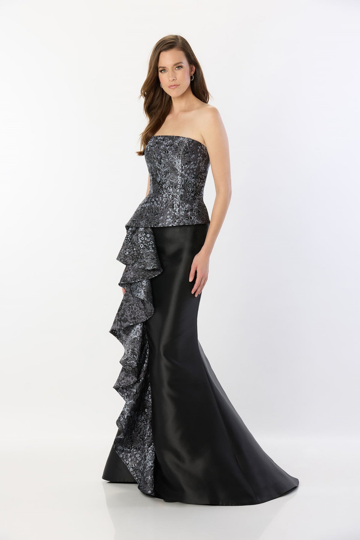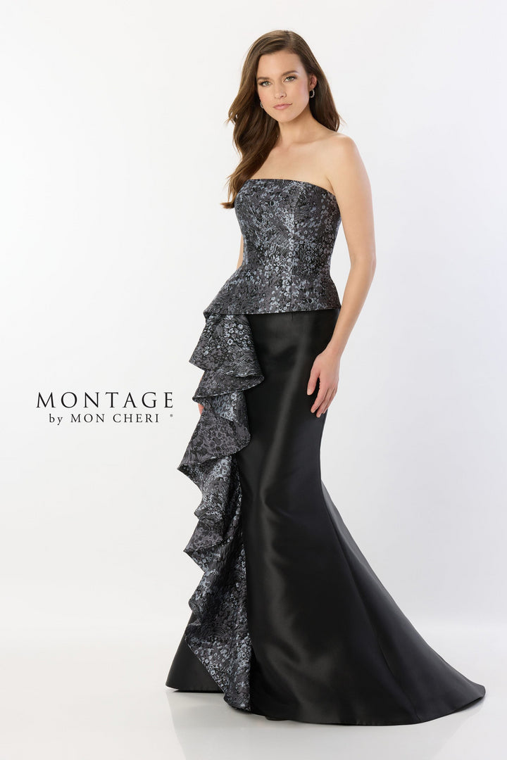 Experience the exquisite elegance of the Mon Cheri Montage M2228, a long, strapless evening gown designed to embrace your curves with its fitted mermaid silhouette. Crafted from sumptuous taffeta, this dress offers a subtle sheen and structured form that enhances your presence at any special event. The sophisticated square neckline and graceful train add a timeless allure, while the discreet zipper back ensures a flawless fit. Perfect for moments where making a refined statement is essential, this masterpiece combines luxurious comfort with striking style, allowing you to shine with confidence and grace throughout your unforgettable evening.