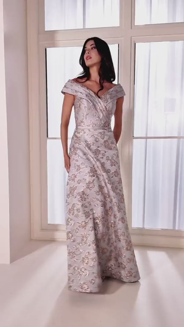 Step into elegance with the Mon Cheri Montage M4203, a splendid choice for evening occasions and Mother of the Bride events. This exquisite A-Line dress is crafted from luxurious jacquard, embracing your figure while exuding sophistication with every curve. The sweetheart neckline and off-the-shoulder sleeves create a delicate allure, enhanced by gorgeous ruching that flatters all silhouettes. The long length cascades gracefully, ensuring you make a memorable entrance. Featuring a convenient back zipper, this dress marries style with ease, allowing you to celebrate life's most cherished moments with confidence and grace. Illuminate the evening in this stunning ensemble that promises to captivate.