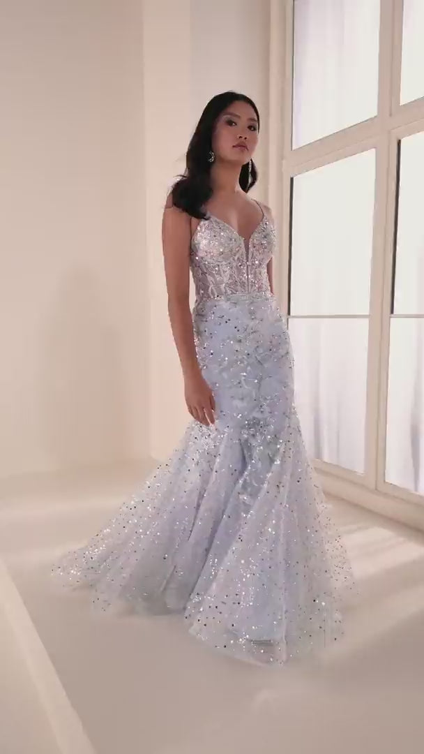 Ellie Wilde EW37021 Embroidered Tulle, Beading, Sequin, Glitter Tulle Spring 2026 Prom dress.