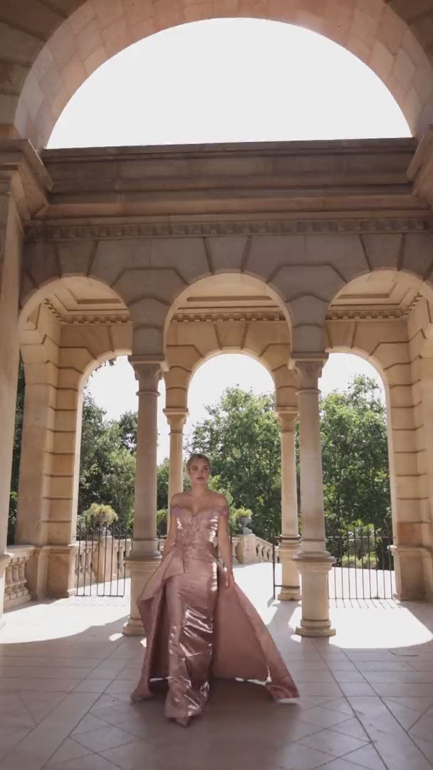 261M6423 Fit and Flare Gown is a glamorous mother-of-the-bride style featuring an off-the-shoulder sweetheart neckline with intricate detailing on the bodice. The fit-and-flare silhouette is elevated with a dramatic shimmer overskirt that cascades from the waist, adding dimension and movement. Finished with a center-back zipper and hook-and-eye closure. Available in Espresso and Emerald.