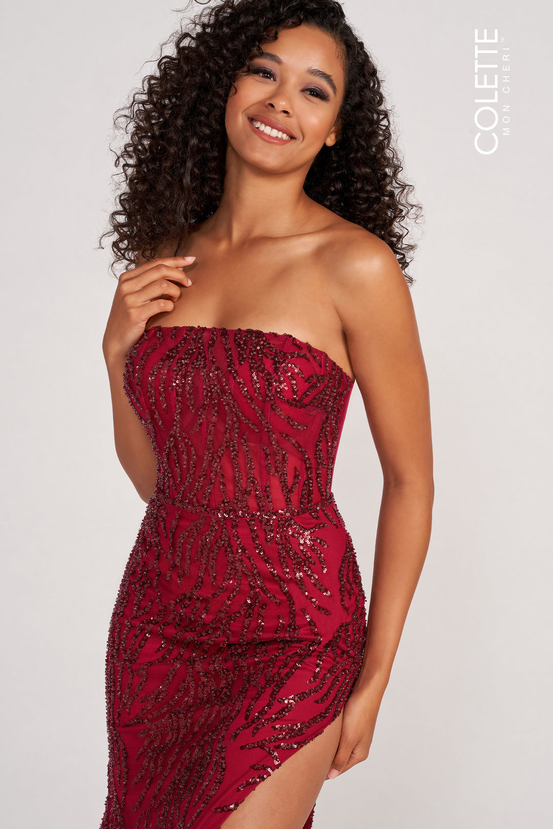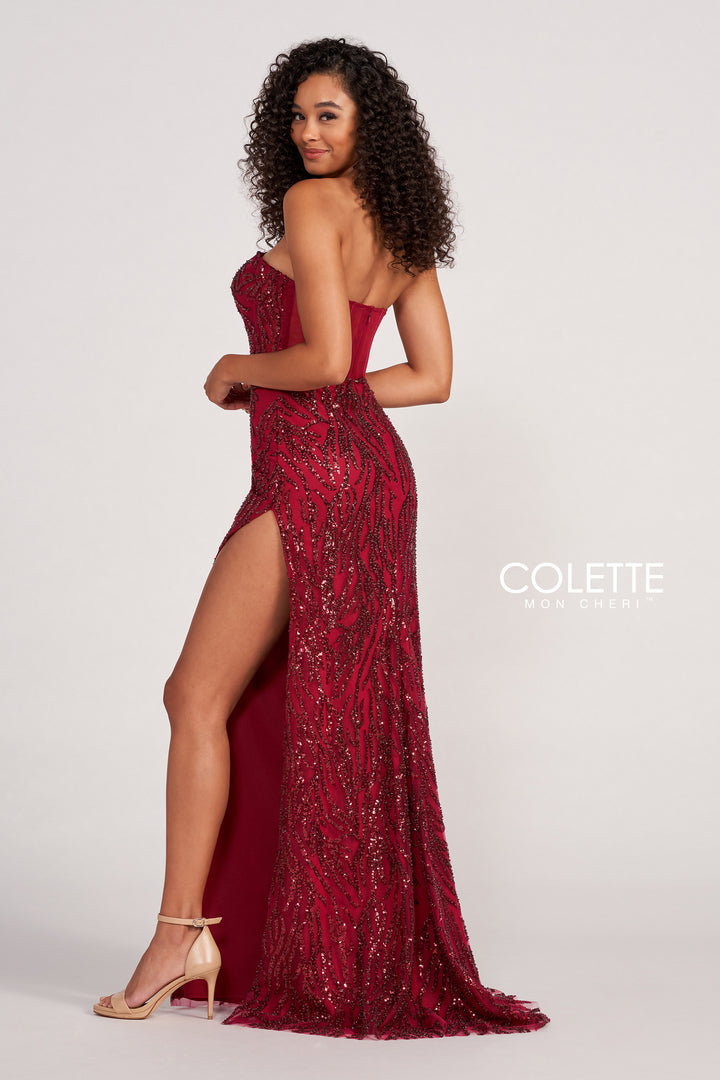 Elevate your evening with the Colette CL2082, a masterful blend of sophistication and allure from the renowned Colette brand. This long, fitted column dress is crafted entirely from shimmering sequins that cascade effortlessly over your silhouette, capturing the light with every movement. The strapless design highlights your shoulders gracefully, while the contemporary square neckline adds a refined architectural edge. A subtle center slit injects just the right amount of drama, inviting confident strides and enraptured glances. Designed with a discreet back zipper for seamless elegance, this gown transforms special occasions into unforgettable moments where all eyes are irresistibly drawn to you.