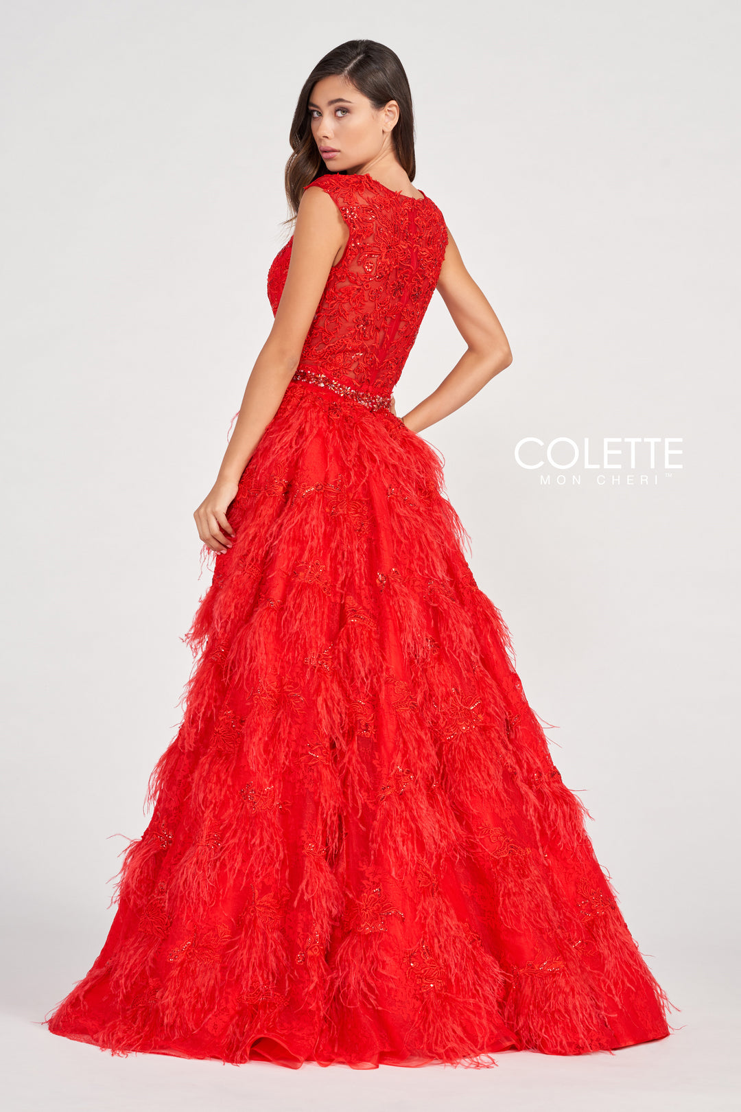 Elevate your evening with the Colette CL2096, a breathtaking creation by Colette that embodies timeless sophistication. Crafted from delicate lace adorned with intricate embroidery, this fitted gown gracefully contours your silhouette, accentuating your figure while the plunging neckline adds a daring yet elegant allure. Feather details and a flowing overskirt enhance the gown’s enchanting presence, evoking a sense of refined whimsy. The cap sleeves and sleek zipper back combine comfort with luxury, making it a perfect choice for prestigious occasions or as a mother of the bride ensemble. Experience the exquisite craftsmanship that ensures you are the embodiment of glamour and grace.