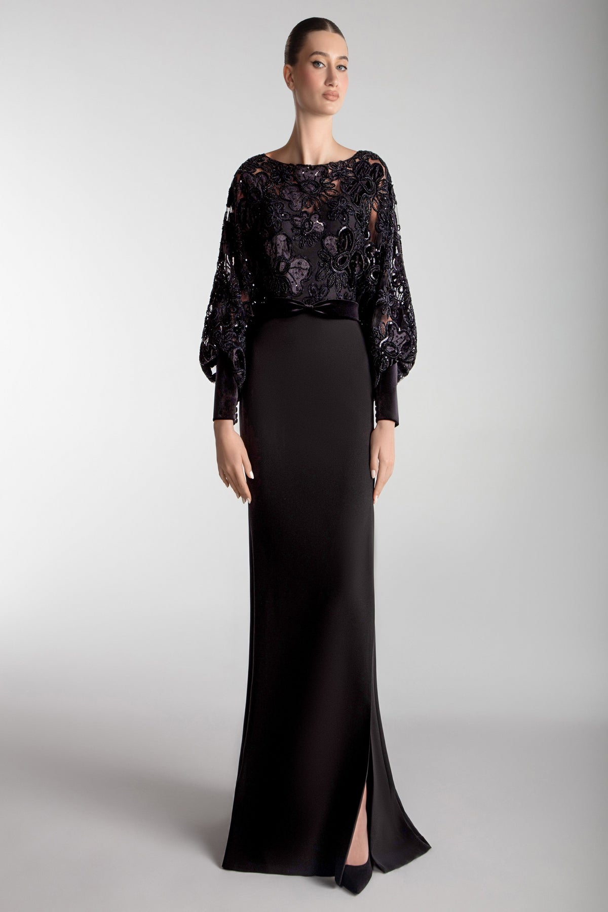 Elevate your formal wear with the exquisite Gatti Nolli OP-7714 long dress, a stunning choice for couture occasions, evening events, or as a sophisticated Mother of the Bride selection. Crafted from luxurious crepe, this fitted silhouette gracefully hugs your figure, exuding confidence and charm. The scoop neckline beautifully frames your décolletage, while long sleeves add an elegant touch, and a daring side slit creates an alluring sense of movement. Designed with a chic belt to accentuate your waist, this gown is not just a piece of clothing; it’s a statement of sophistication and style. The meticulous craftsmanship features a zipper back for a seamless fit that will make you feel as fabulous as you look. Step into the spotlight and embrace an unforgettable night in the Gatti Nolli OP-7714.