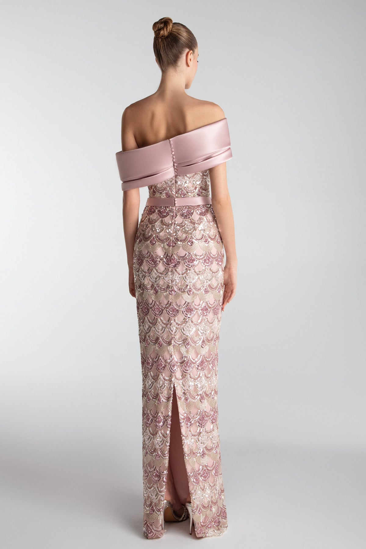Indulge in the captivating elegance of the Gatti Nolli OP-7725, a stunning evening dress designed for those unforgettable moments. Crafted from exquisite embroidery, this fitted column gown hugs your silhouette gracefully while enhancing your natural beauty. The strapless neckline, complemented by off-the-shoulder sleeves, radiates sophistication, making it perfect for couture events or as a mother of the bride attire. A daring slit adds a touch of allure, while the belted waist accentuates your figure. Effortlessly zip up the back, and prepare to shimmer in this long dress that promises to leave lasting impressions wherever you go.