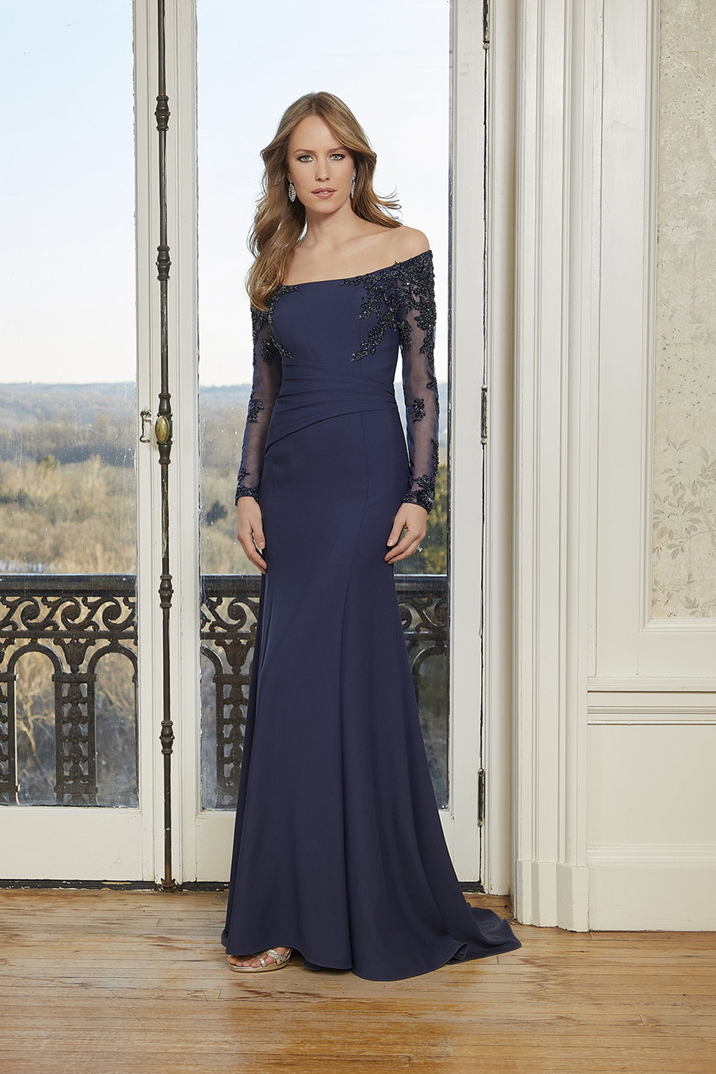 Step into refined elegance with the Morilee 72604, a long evening dress designed to elevate your presence at any distinguished affair. Crafted from sumptuous crepe, this fit and flare gown gracefully contours your silhouette while the draped fabric offers a fluid, sophisticated movement. The boat neckline, adorned with shimmering beadwork, exudes a subtle radiance that captures light and admiration alike. Long sleeves bring a timeless refinement, perfectly balanced by the sleek zipper back for a seamless, tailored fit. Whether you are the mother of the bride or attending a gala, this exquisite gown from Morilee envelops you in luxury and poise.