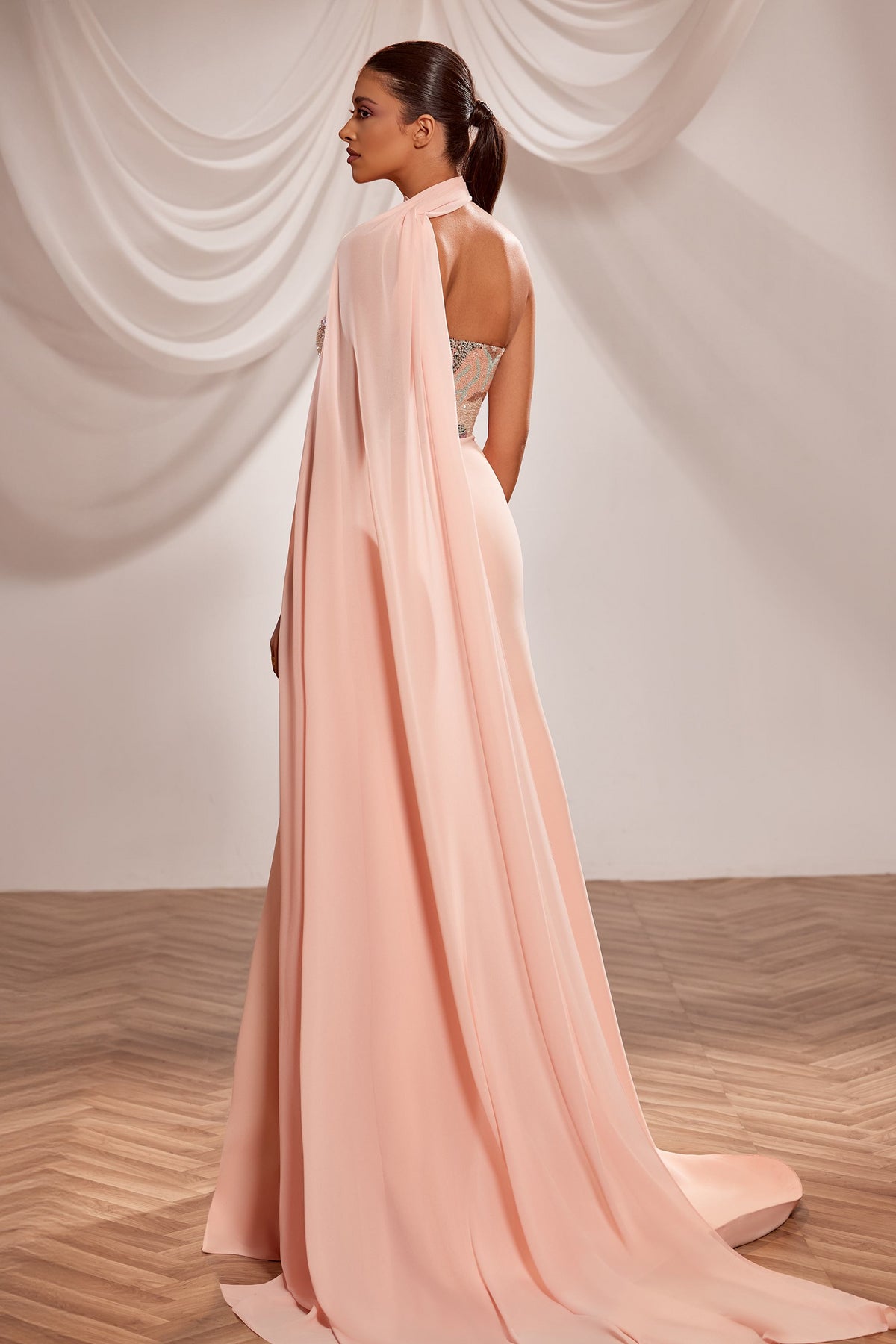 Step into a world of elegance with the Reverie Couture SS224, a breathtaking evening dress designed for unforgettable occasions. This luxurious piece features a fitted silhouette crafted from soft chiffon and crepe, ensuring you feel as exquisite as you look. The stunning sweetheart neckline gracefully frames your décolletage, while the strapless design adds a touch of allure. A daring side slit invites intrigue and movement, making every entrance unforgettable. Perfect for Mothers of the Bride or any couture event, the long length elegantly drapes to create a captivating silhouette. With a delicate zipper back for easy wear, you’ll embody sophistication and poise. Experience the craftsmanship of Reverie Couture and let your beauty shine.