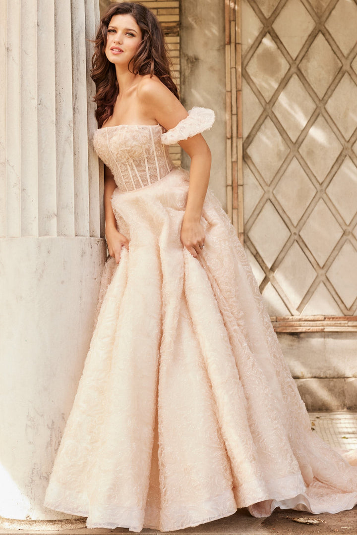 Experience timeless elegance with the Jovani JB26341, a magnificent ball gown designed to captivate at any evening or wedding occasion. Crafted from delicate tulle, this long dress envelops you in ethereal softness while the structured corset effortlessly sculpts your silhouette, offering both support and grace. The strapless square neckline frames your décolletage with refined sophistication, while the dramatic overskirt and sweeping train create a mesmerizing, regal effect as you move. With exquisite detailing, including a zipper accented by buttons at the back, this gown exemplifies meticulous craftsmanship. Step into a world of luxury and poise, where every detail is tailored to elevate your presence.