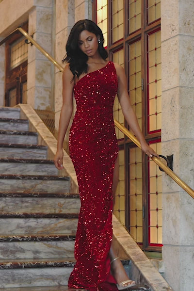 Step into the spotlight with the Sherri Hill 55203, a masterful blend of elegance and allure designed for unforgettable evenings. This long, one-shoulder gown envelops you in shimmering sequins that catch the light with every movement, creating a radiant, captivating glow. The column silhouette, tailored to hug your figure flawlessly, is elevated by a daring thigh-high slit that adds a seductive edge while maintaining exquisite sophistication. A discreet back zipper ensures a seamless fit, allowing you to move with confidence and grace. Perfect for promenade evenings or gala affairs, this sleeveless masterpiece transforms you into the embodiment of refined glamour.