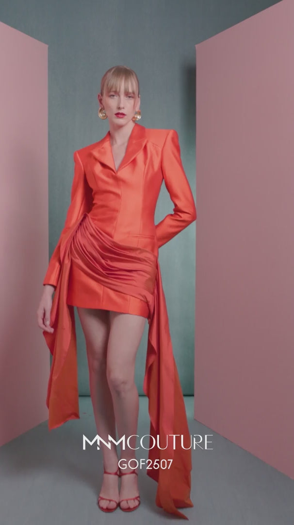 Elevate your evening allure with the MNM Couture GOF2507, a stunning embodiment of sophistication and modern glamour. Crafted from sumptuous silk, this fit-and-flare silhouette features a daring V-neckline that accentuates the décolletage, while long sleeves bring an air of elegance. The exquisite ruching detail and thigh-high slit create a captivating movement, ensuring all eyes are on you at cocktail parties or red carpet events. With a meticulously designed zipper back for a seamless finish, this dress promises to envelop you in luxury and confidence as you make an unforgettable entrance.