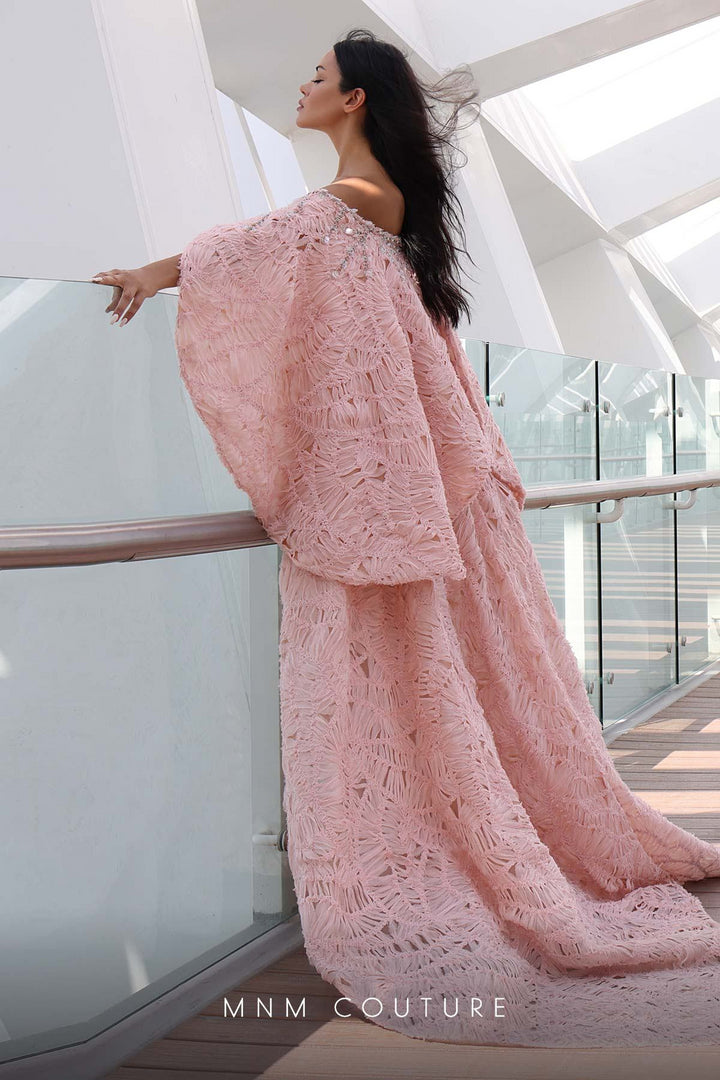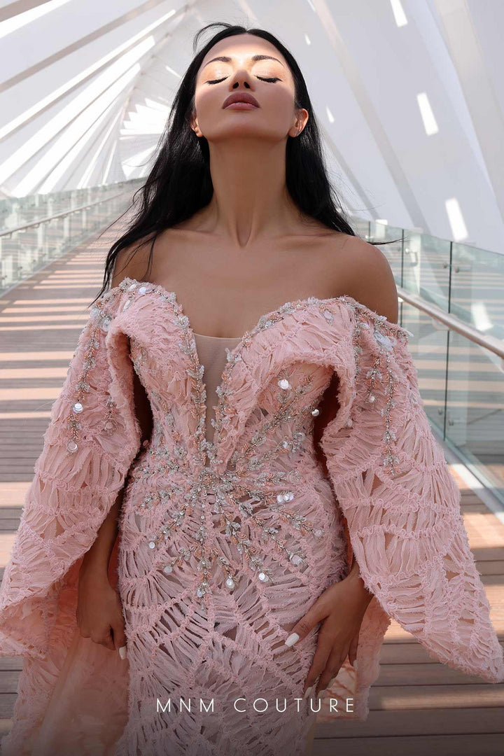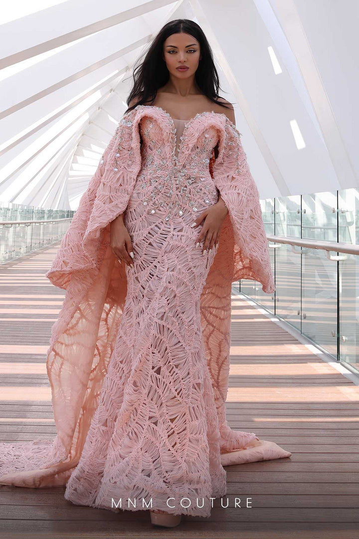 Step into unparalleled elegance with the MNM Couture K4127, a masterpiece from the Spring 2024 evening collection designed to captivate on every special occasion. Crafted with exquisite lace, this fitted gown embraces your silhouette with a romantic sweetheart neckline and a graceful cape sleeve that flows like a whisper with every movement. The long dress features a dramatic train, adding a timeless allure that makes you the unmistakable focus of the room. Finished with a discreet zipper back for a seamless fit, this luxurious piece elevates your presence, ensuring you feel as extraordinary as you look for couture events, mother of the bride celebrations, or any refined evening affair.