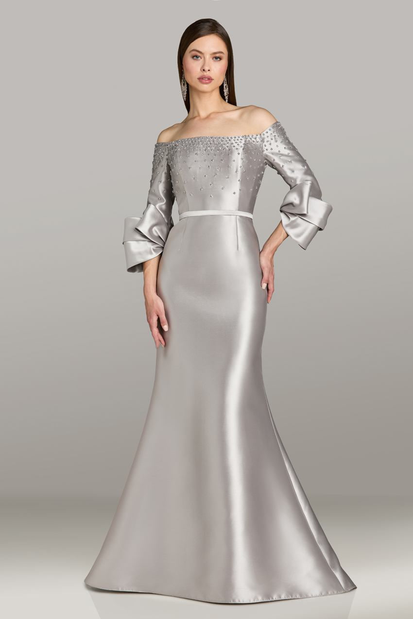 Elevate your evening wear with the Gia Franco 12581, a stunning creation from the Fall 2025 collection. Crafted from luxurious Mikado fabric, this fitted dress envelops you in sophistication, while its long silhouette gracefully elongates your figure. The strapless neckline draws attention to your collarbone, creating an elegant canvas for stunning accessories. A beautiful bow detail adds a touch of playfulness, making this piece perfect for special occasions, whether you're celebrating as a mother of the bride or gracing an evening gala. The back zipper ensures a seamless fit, perfectly merging comfort with chic design. Experience the allure of Gia Franco, where each meticulously crafted detail speaks to your refined taste.