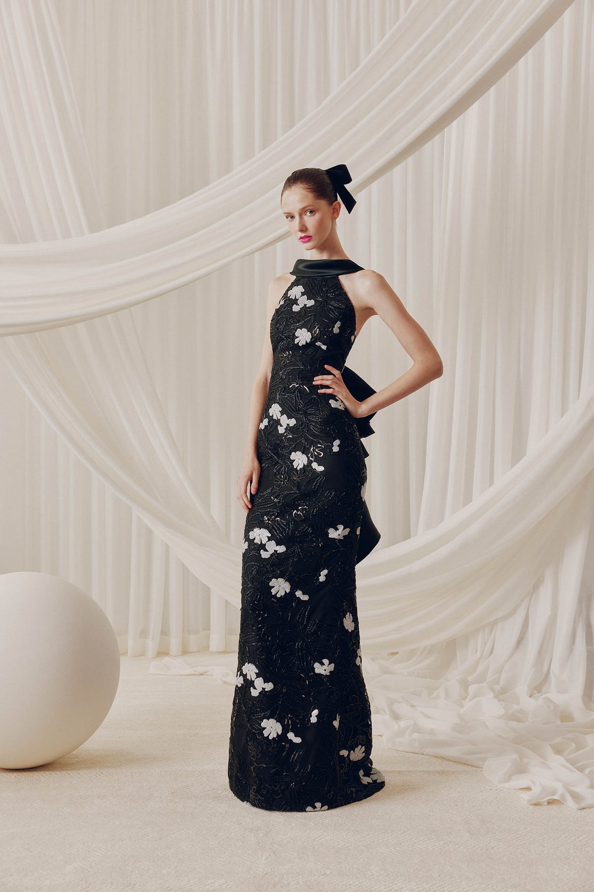 Experience elegance redefined with the Audrey+Brooks 6806, a couture evening gown crafted for unforgettable moments. This fitted, sleeveless masterpiece showcases intricate embroidery that delicately embraces your silhouette, while the high neckline and contrast satin collar band elevate its refined charm. The halter design gently frames your shoulders, leading to a captivating ruffled train that flows with graceful movement. Satin lining ensures sumptuous comfort, and a discreet back zipper offers a seamless finish. Whether you’re the mother of the bride or attending a prestigious event, this luxurious long dress promises to envelop you in timeless sophistication and poise.