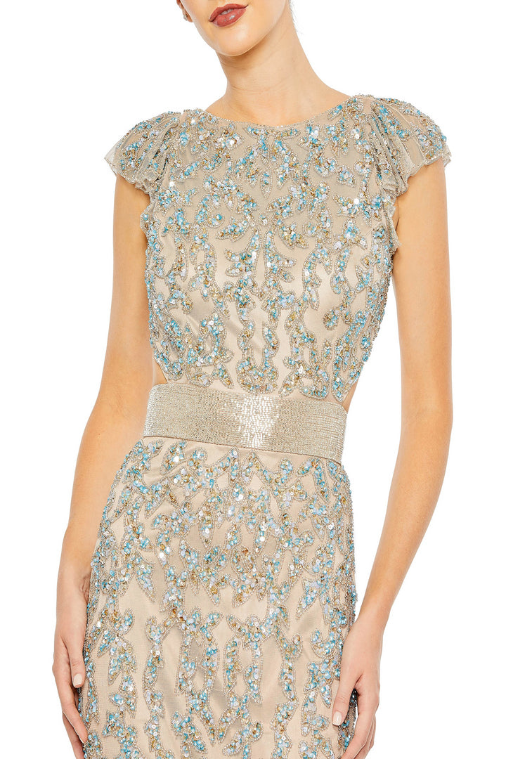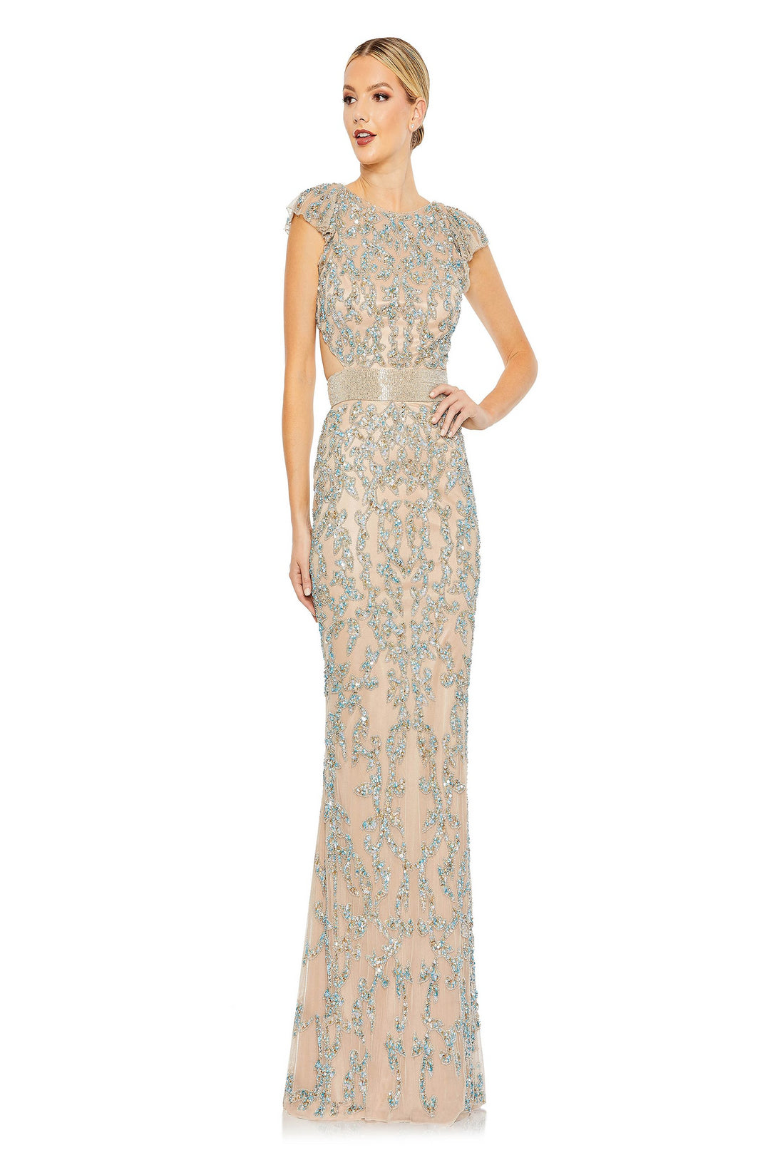 Elevate your evening with the Mac Duggal 5689, a stunning column-style gown designed to captivate. Crafted from delicate tulle interwoven with shimmering sequins, this long dress envelops you in an ethereal glow. The refined crew neckline and beaded cap sleeves introduce a subtle, sophisticated sparkle, while the dramatic corset lace-up back ensures a flawless, tailored fit that flatters every curve. This masterpiece showcases impeccable craftsmanship and timeless elegance, making it an unforgettable choice for any formal occasion. Experience the thrill of turning heads and commanding attention in a gown that embodies both glamour and grace.