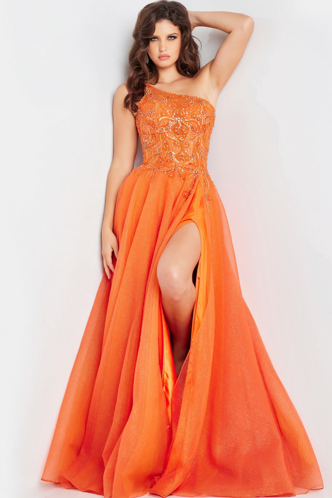 Experience unparalleled sophistication with the Jovani 25688, a stunning long A-line prom dress designed to captivate. Crafted from delicate organza, this sleeveless gown features intricate embroidery that adds a touch of artisanal finesse, while the daring slit gracefully reveals a hint of allure as you move. The one-shoulder neckline elegantly frames your silhouette, complemented by a smooth zipper back for a flawless fit. Perfectly tailored for unforgettable evening occasions, this luxurious masterpiece embodies both poise and modern glamour. Elevate your presence and let Jovani envelop you in refined beauty that commands admiration throughout the night.