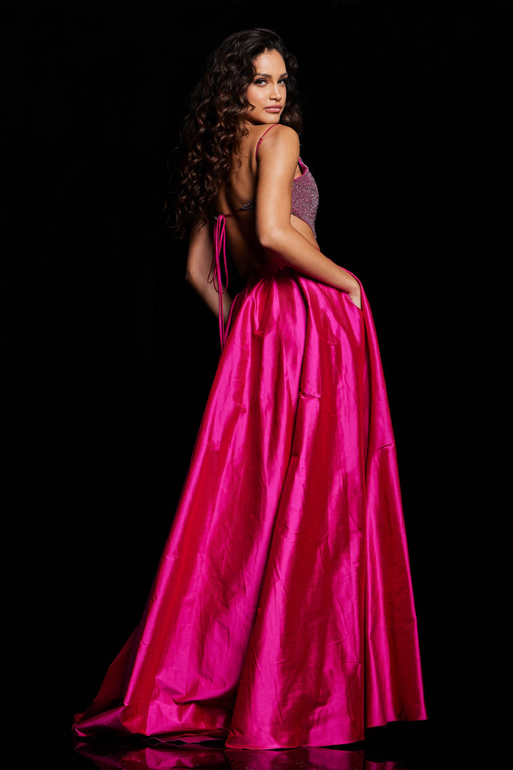 Step into an enchanting evening with the Jovani 37045, a masterpiece designed for those who cherish refined luxury. Crafted from sumptuous taffeta, this long A-line gown drapes elegantly while the subtle slit reveals just a hint of allure. The sweetheart neckline and slender straps frame your décolletage with delicate sophistication, while the daring open back adds a bold, captivating touch. Perfectly tailored for couture evenings, this dress embodies graceful confidence, elevating your presence with every step. Experience the seamless blend of classic glamour and modern design, making you the radiant center of any gathering. Jovani invites you to own the night in timeless elegance.