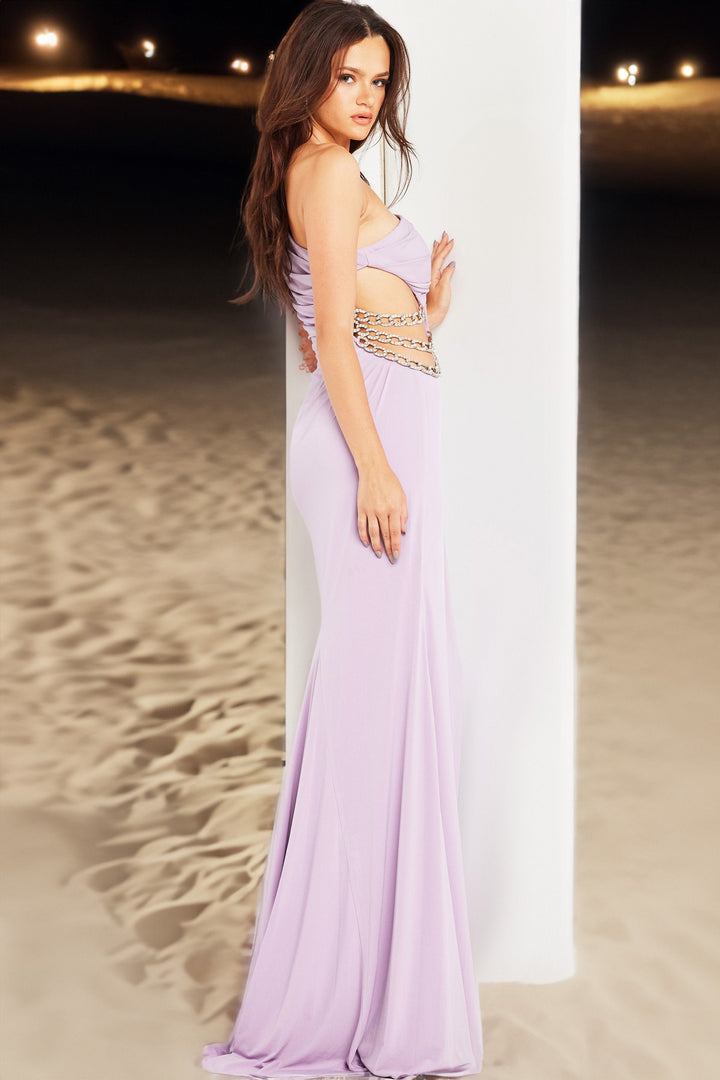 Step into the spotlight with the Jovani 37367, a masterful blend of refined design and sumptuous comfort. Crafted from smooth jersey fabric, this long, fitted evening dress sculpturally hugs your silhouette, enhanced by artful ruching that adds graceful texture and dimension. The sleek one-shoulder neckline and sleeveless cut project modern elegance, while the daring slit reveals just the right amount of allure. With a discreet zipper back ensuring a flawless fit, this Jovani creation transforms every moment into a statement of sophistication and confidence. Perfect for prom or any upscale evening affair, it invites you to embody timeless glamour effortlessly.