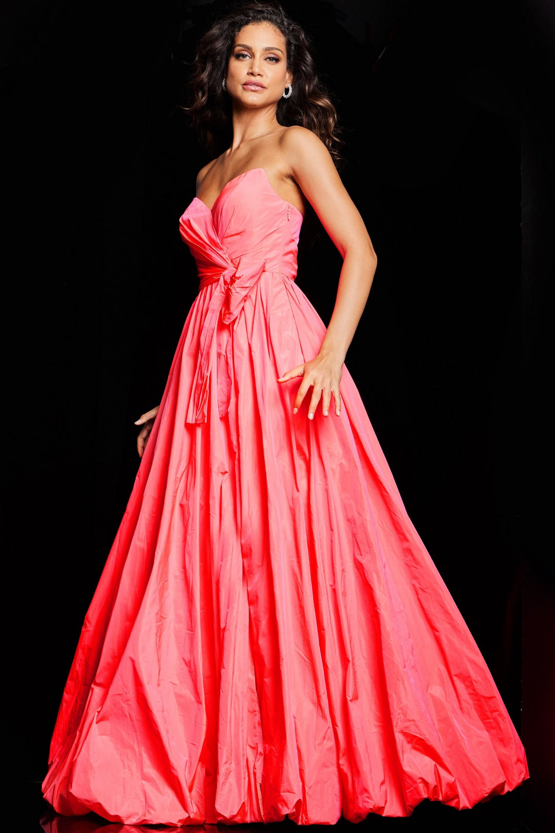 Step into a world of refined glamour with the Jovani 38382, a luxurious taffeta ball gown designed to captivate at any evening affair or as a stunning mother of the bride dress. This strapless masterpiece features a delicate sweetheart neckline that frames your silhouette with grace, while the artful ruched bodice and elegant bowknot detail add a touch of romantic charm. The long flowing skirt, accentuated by a daring slit, moves effortlessly with you, creating an enchanting presence. With a discreet side zipper for a flawless fit, this timeless gown invites you to embrace both sophistication and allure, ensuring you leave an unforgettable impression.