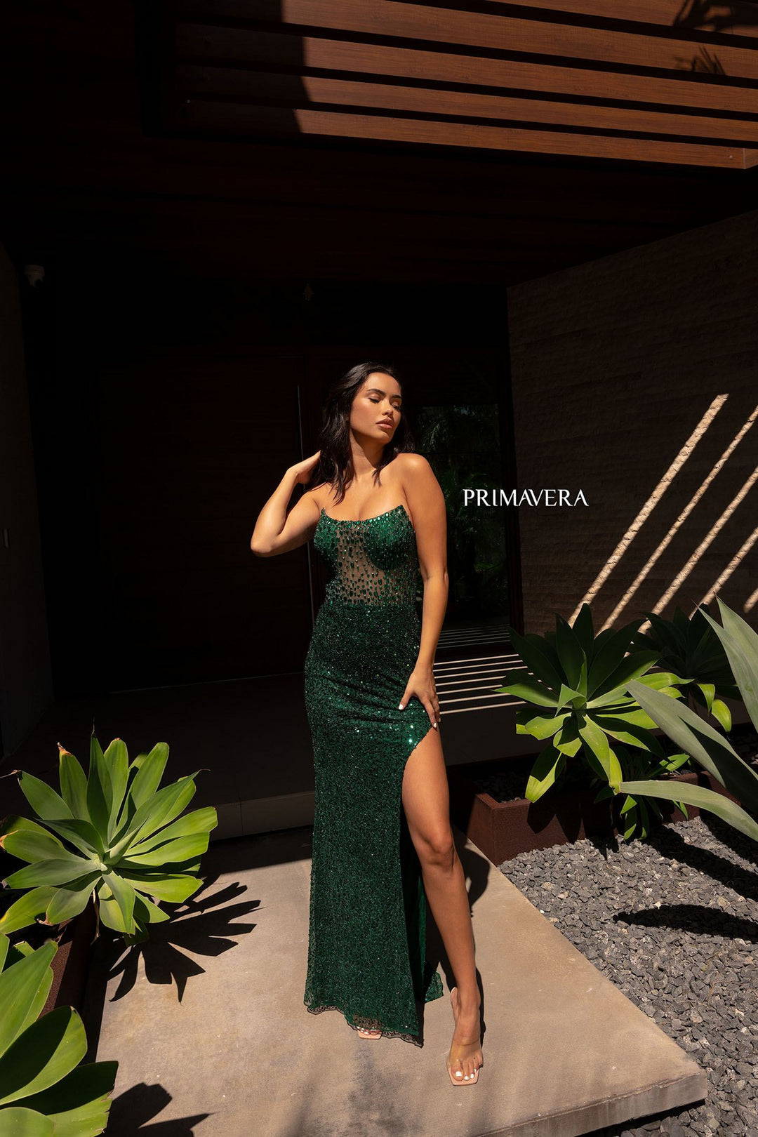 Step into a world of sophistication with the Primavera 12123, a stunning evening dress designed for those who appreciate elegance and style. The fitted silhouette accentuates your curves beautifully, while the exquisite beadwork catches the light in a mesmerizing dance, creating a captivating presence at any event. The scoop neckline and strapless design offer a timeless allure, while the dramatic slit adds a daring touch, ensuring all eyes are on you. Crafted with meticulous attention to detail, this long dress features a sleek zipper back for effortless wear. Whether you're attending a glamorous prom or an elegant evening gala, the Primavera 12123 is sure to elevate your wardrobe and inspire compliments wherever you go. Indulge in luxury and let this dress be your statement piece for unforgettable moments.