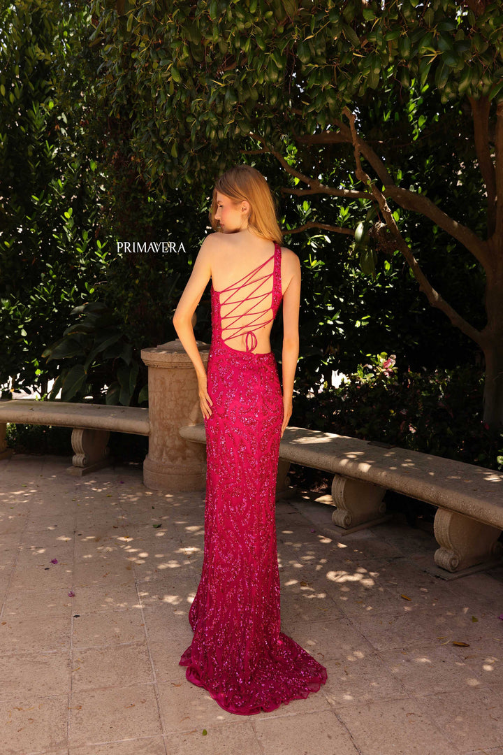 Step into the spotlight with the breathtaking Primavera 4191, a stunning evening dress that redefines elegance. Crafted from luminous sequin fabric, this fitted design hugs your silhouette beautifully while the one-shoulder neckline adds an allure that's impossible to resist. The long, flowing length drapes gracefully, with a daring slit that offers a tantalizing glimpse of your legs as you glide across the room. The exquisite criss-cross back detail enhances this dress's sophistication, making it a perfect choice for prom nights or enchanting evening gatherings. Elevate your wardrobe and make unforgettable memories in the Primavera 4191, a testament to timeless style and luxurious craftsmanship.