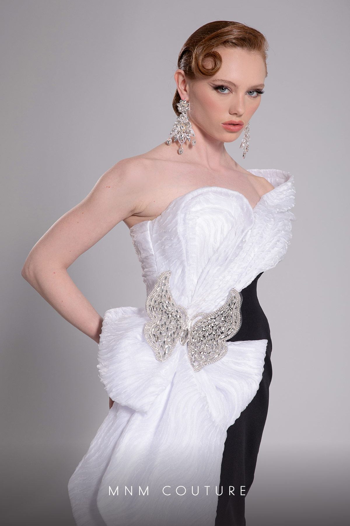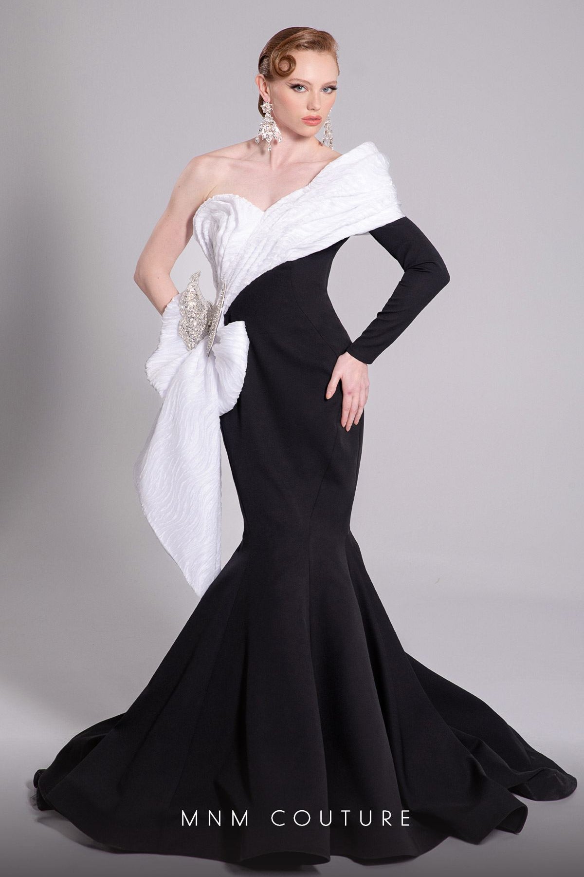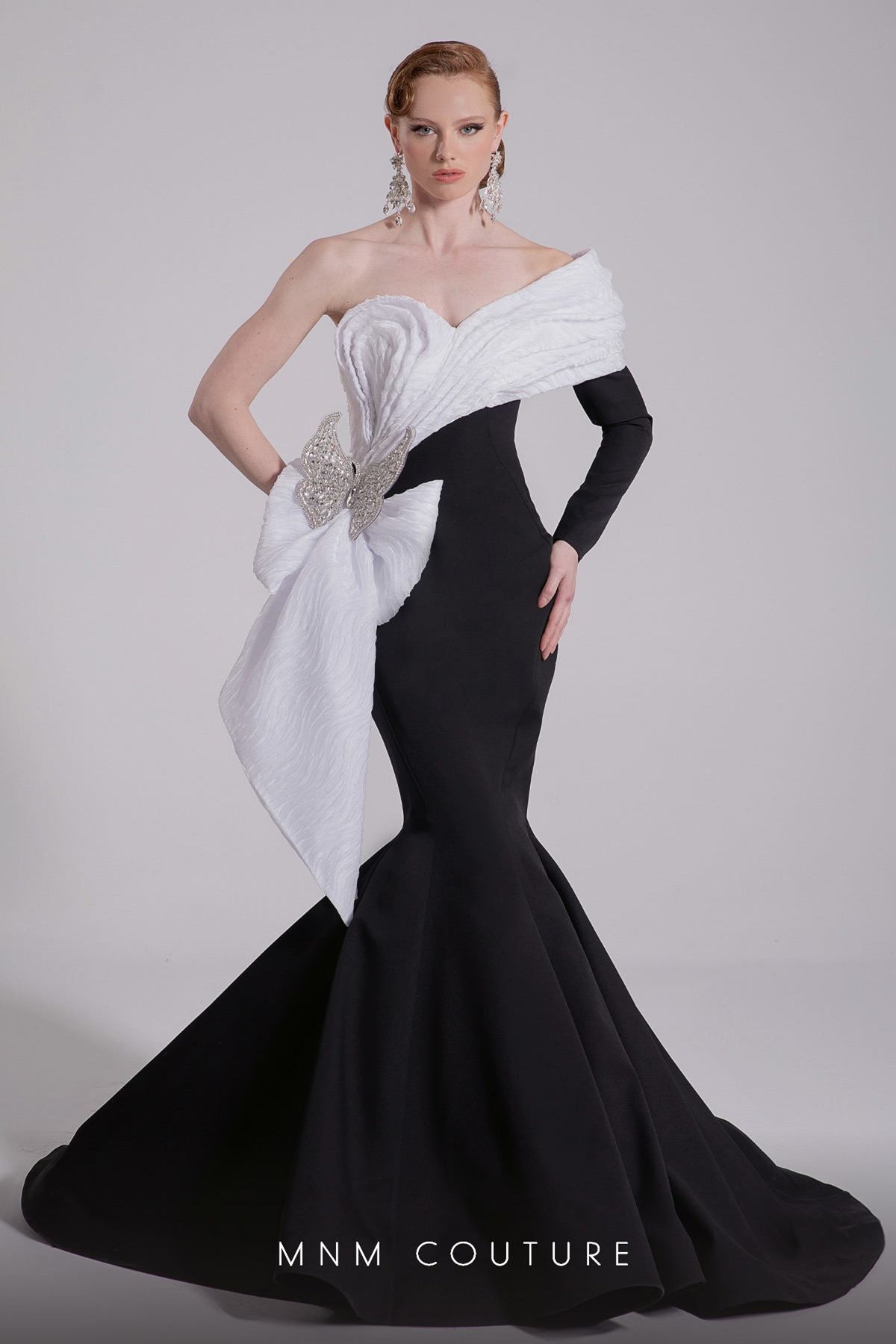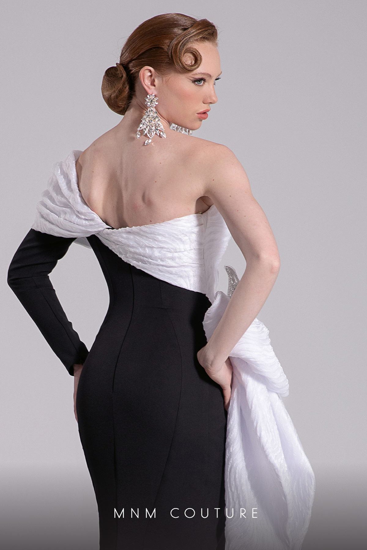 Eleve su guardarropa nocturno con el vestido MNMCoutureF02907, una obra maestra diseñada con gracia para esas ocasiones especiales. Confeccionado en crepé suntuoso, su silueta sirena abraza sus curvas elegantemente, mientras que el llamativo escote de un solo hombro añade un toque sofisticado. El corpiño ajustado presenta un encantador detalle de lazo, infundiendo un sentido de fantasía en el diseño lujosamente refinado. Al deslizarse en la habitación, la longitud larga de este vestido se desplaza hermosamente, asegurando que todas las miradas estén sobre usted. Perfecto para madres de la novia o cualquier reunión de alta costura, este vestido promete realzar su presencia con su elegancia atemporal y artesanía impecable. Permítase una pieza emblemática que habla tanto de estilo como de gracia, haciendo que los momentos memorables sean inolvidables.