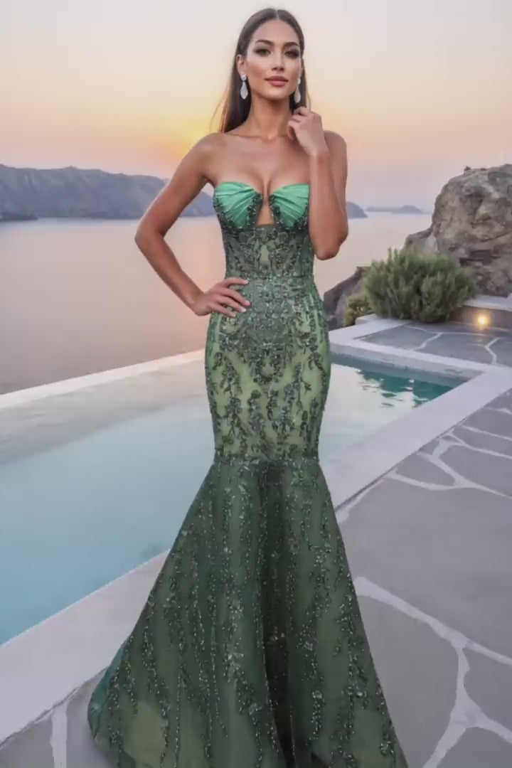Elvestido261GL6001MermaidGownesunvestidodegalaespectaculardiseñadocontulricamentebordado.Conunescotecorazónyuncorséajustadoadornadoconintricadosadornos,fluyehacialunafaldamermaidramáticaqueenfatizalafigura.Completoconunacremalleracentraltraseraycierredegancho-y-ojo.DisponibleenEsmeralda,Mantequilla,yAzulHielo.