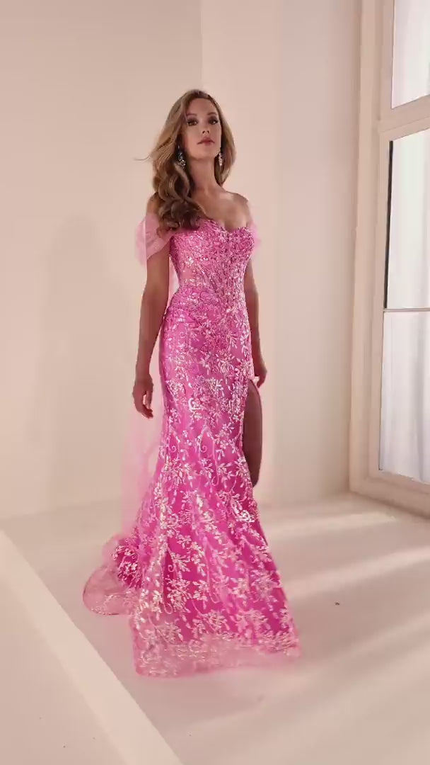 Ellie Wilde EW37030 Hielo Agrietado, Aplicación de Encaje, Lentejuelas, Tul Brillante Vestido de Promoción Primavera 2026.