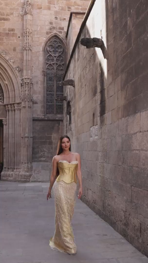 AdéntreseenelcentrodelatenciónconelVestidoSirenaSweetheart261E6238,unavisióndesofisticaciónyglamourmoderno.Estediseñosincorreaspresentauncuelloescotadocorazónesculpidoqueenhancelaescotadura,acompañado de un cuerpo mikado elegante para estructura y atractivo.La silueta ajustada se abre en una falda sirena fluida, creando un movimiento dramático con cada paso.Un cierre seguro de cremallera y gancho en el centro de la espalda garantiza un ajuste perfecto, mientras que la longitud de 46” desde la cintura hasta el dobladillo añade un efecto alargador.Perfectamente confeccionado para ocasiones nocturnas, este vestido se ofrece en dorado, rosa pálido y negro—cada tono irradia elegancia atemporal.Diseñado para mujeres que abrazan la refinación audaz, esta obra maestra de Terani Couture aporta confianza de alfombra roja a galas, bodas y celebraciones formales.