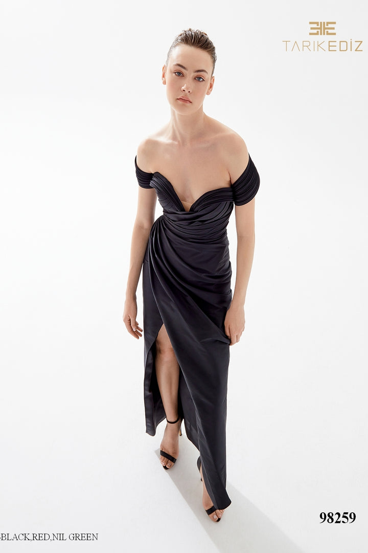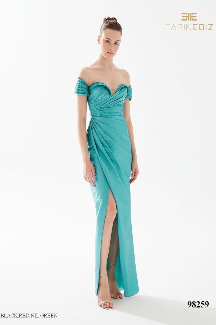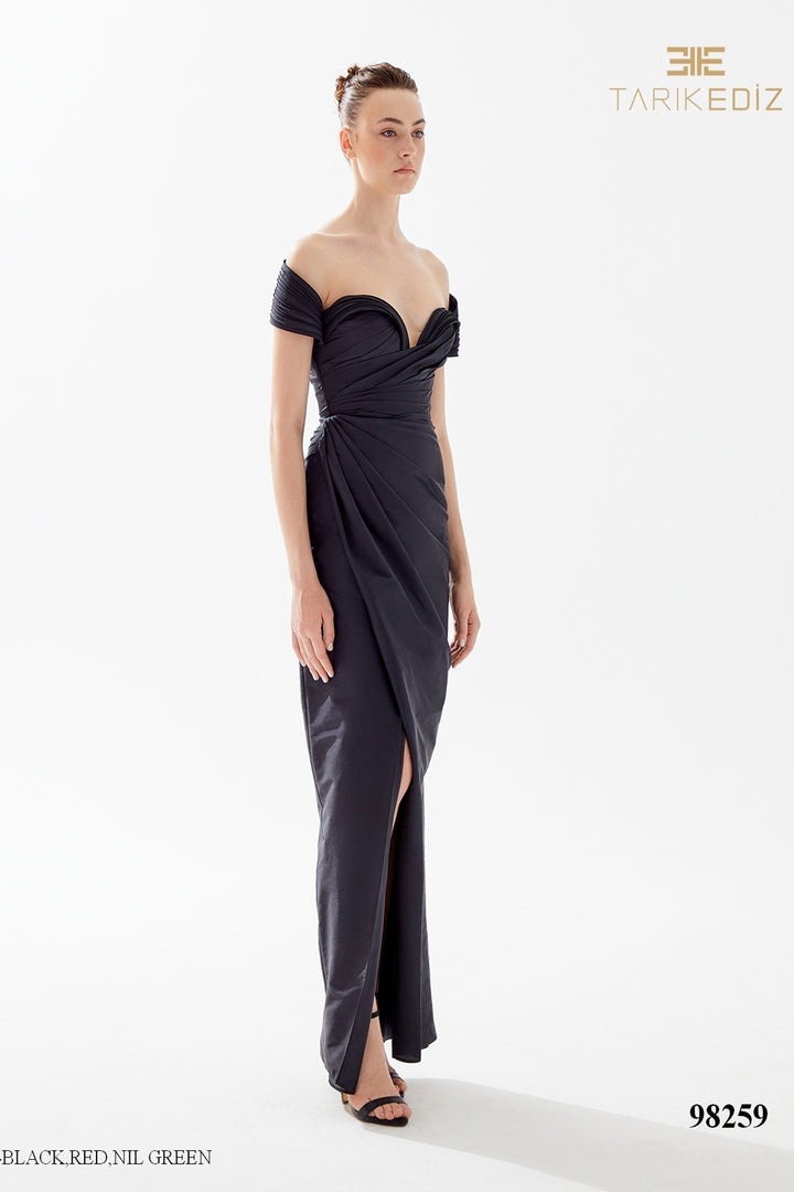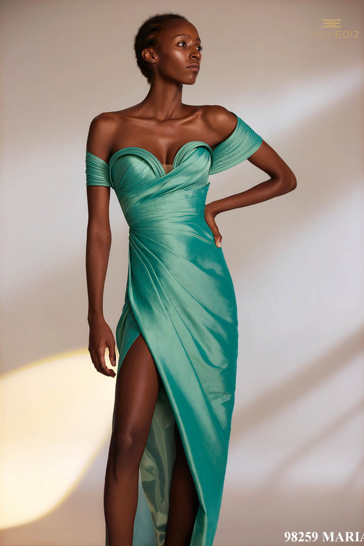 Sumérgete en la elegancia con el vestido de noche Tarik Ediz 98259, una mezcla magistral de tafetán suntuoso que te abraza en una silueta elegante de columna. Este vestido largo presenta un cautivador escote corazón y delicadas mangas fuera del hombro, resaltando tu escote con gracia refinada. Los pliegues intrincados esculpen el corpiño, creando una textura seductora que realza tu figura, mientras una abertura atrevida añade un toque de sofisticación y movimiento. La discreta cremallera trasera garantiza un ajuste impecable, permitiéndote deslizarte con confianza a través de cualquier evento de lujo. Diseñado para hacer entradas inolvidables, esta creación de Tarik Ediz promete elevar tu noche con glamour atemporal y encanto innegable.