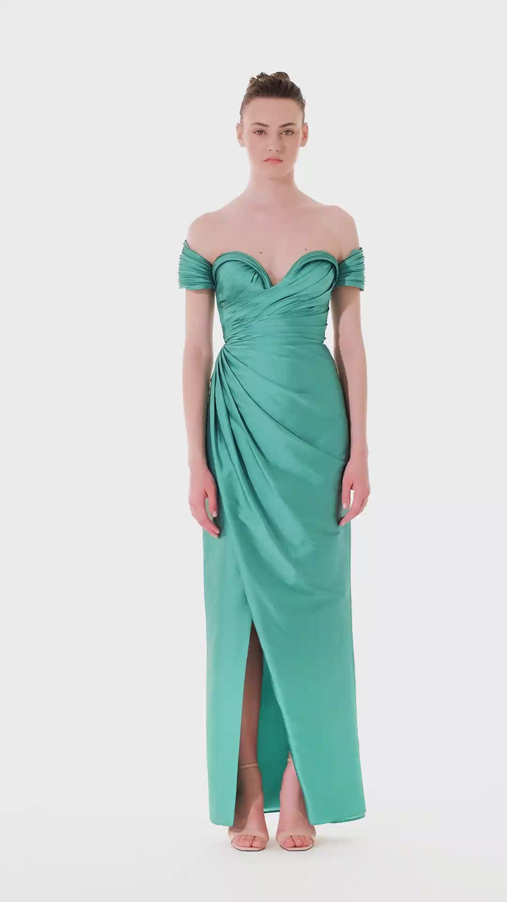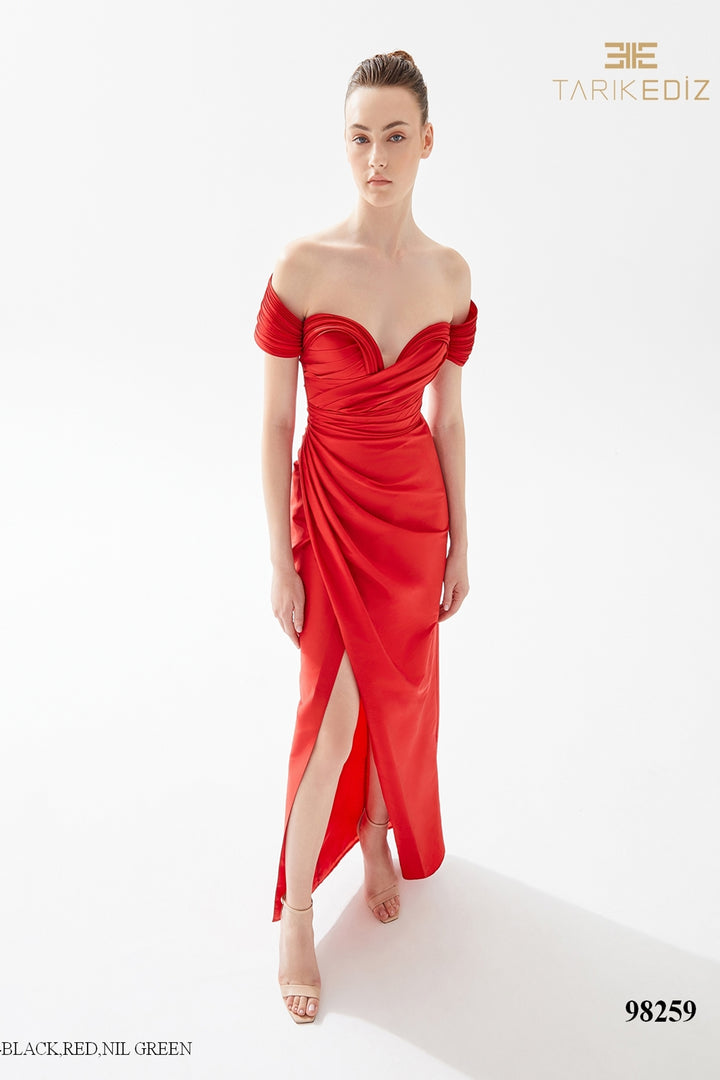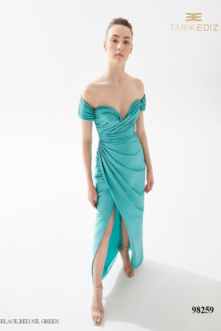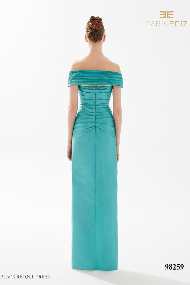 Sumérgete en la elegancia con el vestido de noche Tarik Ediz 98259, una mezcla magistral de tafetán suntuoso que te abraza en una silueta elegante de columna. Este vestido largo presenta un cautivador escote corazón y delicadas mangas fuera del hombro, resaltando tu escote con gracia refinada. Los pliegues intrincados esculpen el corpiño, creando una textura seductora que realza tu figura, mientras una abertura atrevida añade un toque de sofisticación y movimiento. La discreta cremallera trasera garantiza un ajuste impecable, permitiéndote deslizarte con confianza a través de cualquier evento de lujo. Diseñado para hacer entradas inolvidables, esta creación de Tarik Ediz promete elevar tu noche con glamour atemporal y encanto innegable.