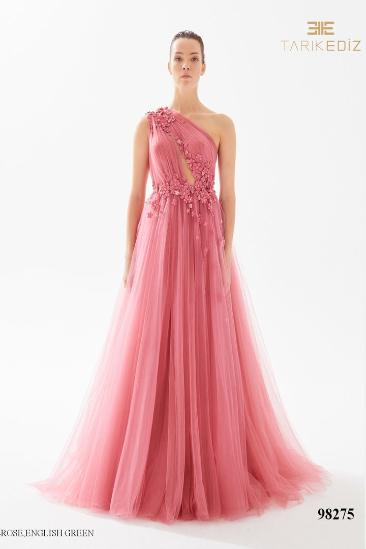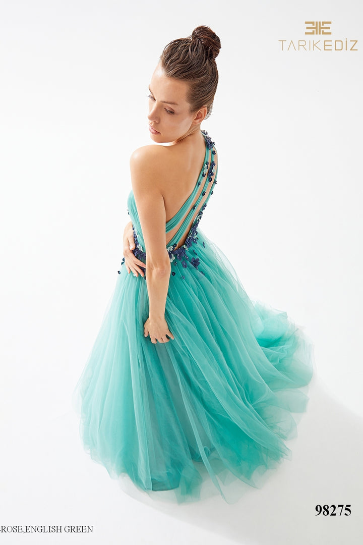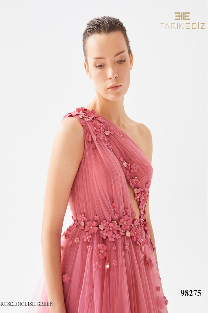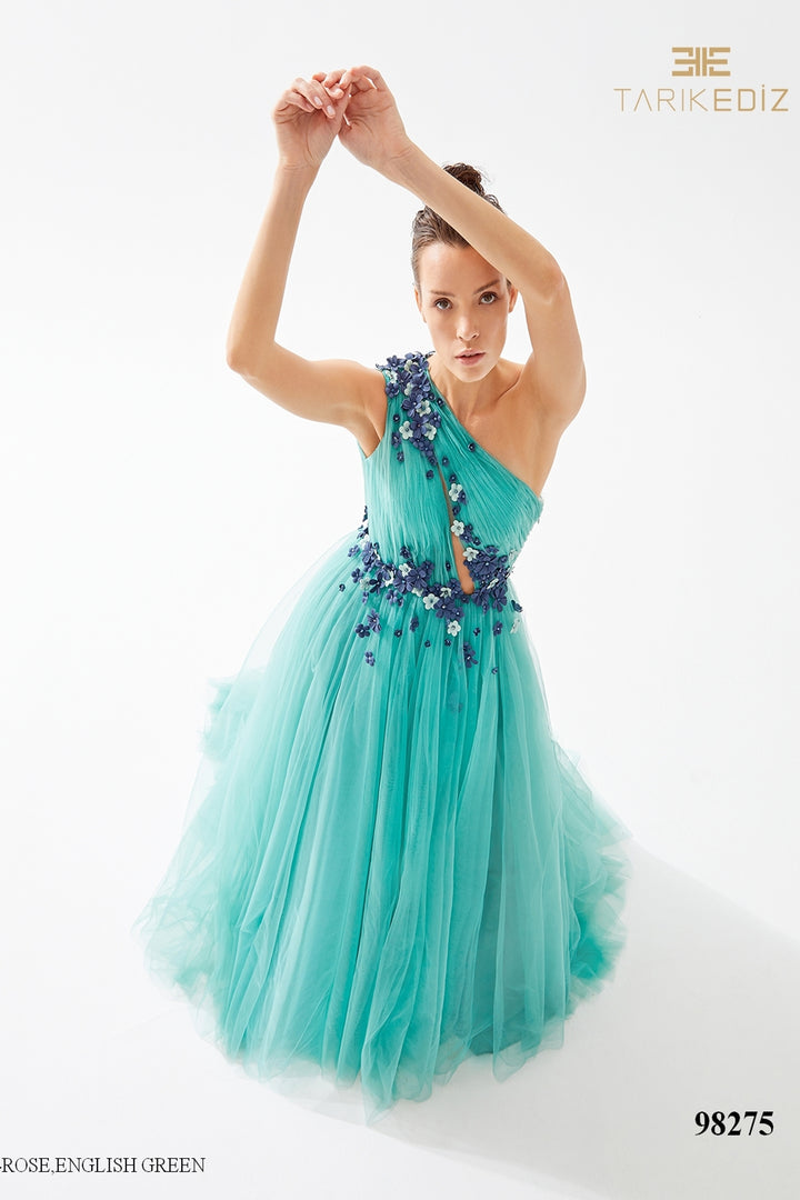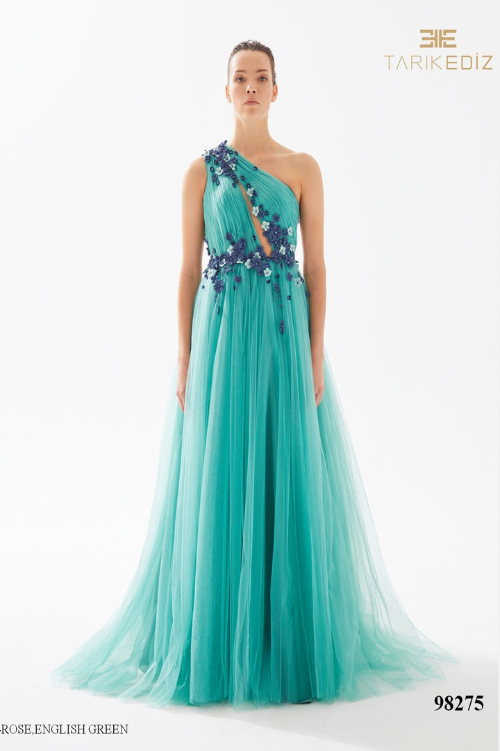 Adéntrate en un reino de elegancia refinada con el Tarik Ediz 98275, un largo vestido de noche de línea A que transforma tu presencia en una declaración inolvidable. Confeccionado en tul etéreo, este vestido presenta plisados delicados que contornean suavemente tu silueta, adornados con exquisitos adornos florales que evocan una sensación de romance atemporal. El escote de un hombro y la correa asimétrica revelan con gracia una espalda baja, fusionando el atractivo moderno con la sofisticación clásica. Diseñado para aquellos que aprecian la artesanía y el glamour, esta obra maestra sin mangas te invita a dominar la habitación con una postura seductora pero elegante, encarnando el espíritu del verdadero lujo.