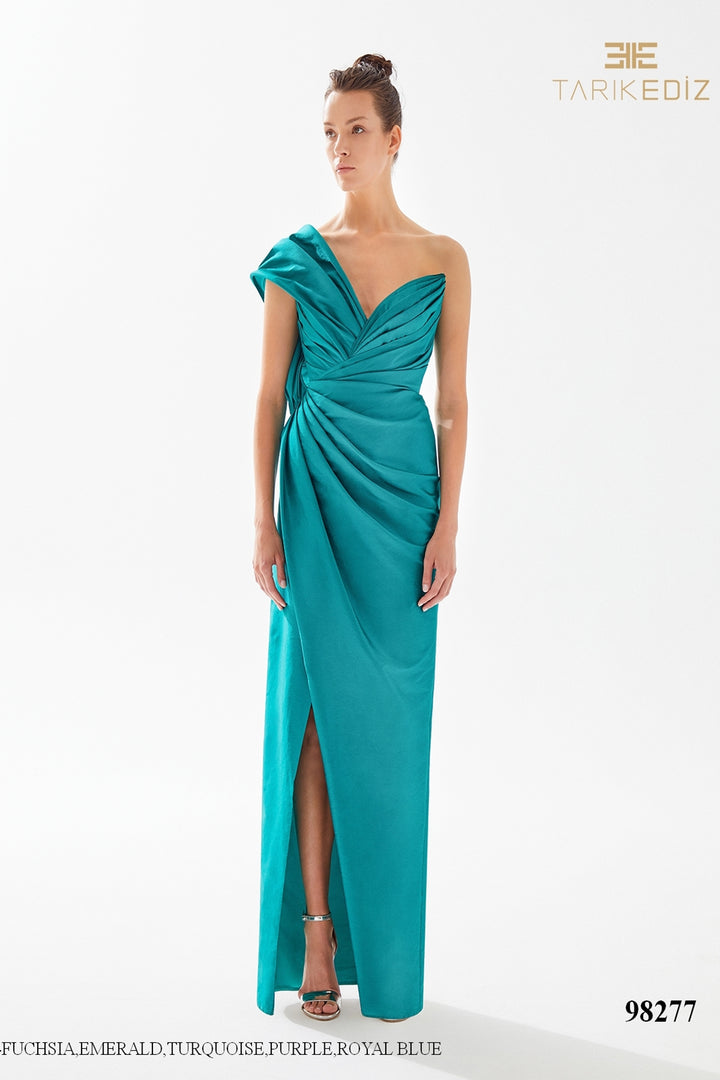 Eleve su presencia nocturna con el Tarik Ediz 98277, una impresionante encarnación de elegancia refinada. Confeccionado en lustroso tafetán, este largo vestido columna contornea graciosamente su silueta con exquisitos fruncidos que realzan cada curva. El escote de un solo hombro y el diseño sin mangas invitan a una atracción moderna pero atemporal, mientras que la atrevida abertura lateral añade un toque de movimiento seductor al caminar. Perfecto para veladas sofisticadas, su elegante cierre de cremallera trasera garantiza un ajuste impecable, haciéndole sentirse confiada y radiante sin esfuerzo en cada gala o evento formal. Experimente un glamour sin igual con esta exquisita obra maestra de Tarik Ediz diseñada para cautivar.