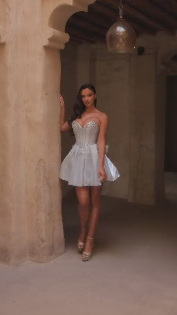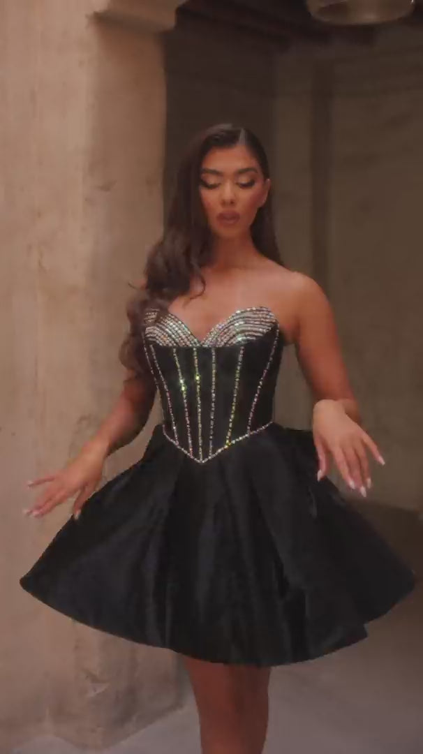 Pise el escenario con el Portia & Scarlett PS25706, un impresionante vestido de satén diseñado para elevar su presencia en cualquier regreso a casa o fiesta. Este mini vestido ajustado y acampanado contornea su silueta sin esfuerzo, mientras que el corpiño de corsé realza su forma con una estructura refinada. El escote corazón sin tirantes enmarca delicadamente su escote, irradiando elegancia atemporal. Un encantador detalle de lazo añade un toque juguetón pero sofisticado, equilibrando perfectamente el atractivo con la gracia. Terminado con una cremallera suave en la espalda para un ajuste perfecto, este vestido le invita a experimentar el lujo y la confianza mientras celebra noches inolvidables con un estilo impecable.