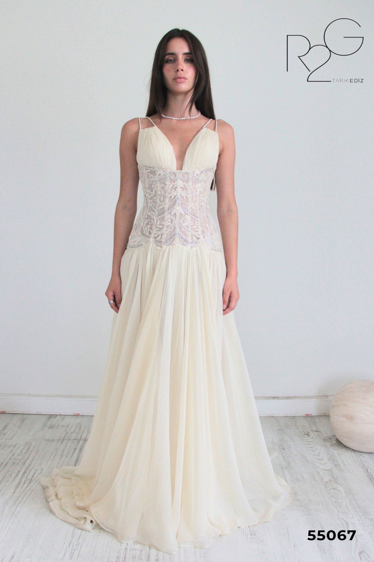 Eleve su atuendo nocturno con el exquisito Tarik Ediz 55067.Este impresionante vestido en línea A personifica la sofisticación, presentando un cautivador escote en V y delicadas tiras que enmarcan elegantemente sus hombros.Confeccionado en suave chiffon, la tela cae suavemente, creando una silueta ligera que se mueve con gracia al entrar en cualquier evento, ya sea una boda o una elegante velada.El corsé diseñado expertamente proporciona un ajuste a medida, realzando su figura y ofreciendo comodidad durante toda la noche.Con una práctica cremallera trasera, ponerse este vestido largo se convierte en un momento de lujo sin esfuerzo.Salga irradiando confianza y atractivo con Tarik Ediz 55067, una verdadera obra maestra en ropa de noche.