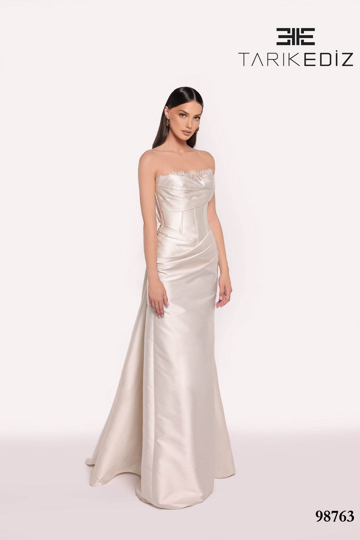 Eleve su noche con el Tarik Ediz 98763, un impresionante vestido de Mikado diseñado para cautivar a cada mirada. Esta obra maestra ajustada y sin tirantes contornea su silueta impecablemente, realzada por un corsé estructurado que ofrece tanto soporte como elegancia. El escote cuadrado enmarca su escote con gracia, mientras que el refinado detalle del lazo añade un toque de sofisticación femenina. Diseñado para momentos inolvidables, su largo barrido se mueve sin esfuerzo a medida que usted se desplaza, encarnando el lujo atemporal. Perfecto para bodas o grandes soirées, esta exquisita creación de Tarik Ediz combina una confección impecable con un drama sutil para asegurar que se sienta radiante y elegante. Experimente la atracción que los conocedores exigentes adoran.