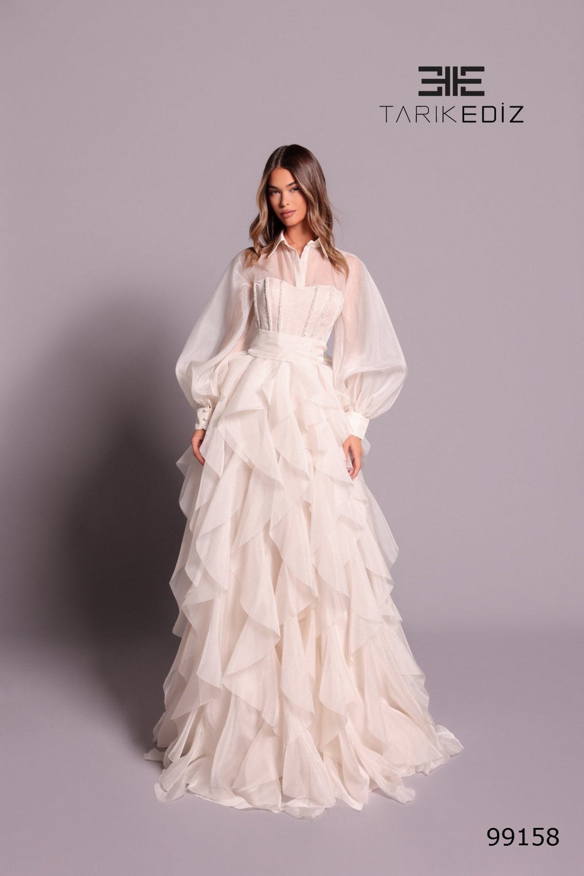 Tarik Ediz 99158 2026 evening collection Organza dress.