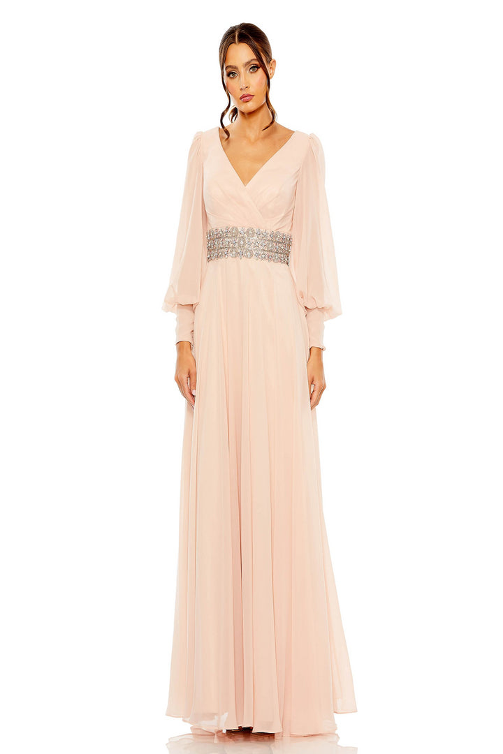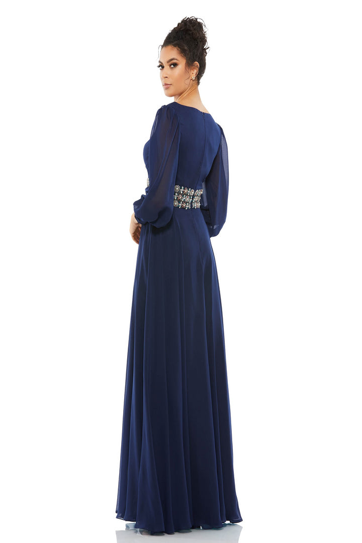 Sumérgete en una elegancia incomparable con el Mac Duggal 79390, una obra maestra diseñada para elevar tu experiencia nocturna. Este largo y fluido vestido de gasa te abraza con su textura ligera y aireada, mientras los detalles delicadamente bordados añaden un brillo de glamour refinado. La favorecedora silueta en forma de A cae suavemente hasta el suelo, realzando cada uno de tus movimientos con una gracia fluida que cautiva desde cada ángulo. Con un sofisticado escote en V y mangas largas, este vestido ofrece un equilibrio atemporal entre el atractivo y la modestia, asegurado de forma impecable por una cremallera oculta en la espalda. Perfecto para llamar la atención en bodas o galas formales, esta exquisita creación de Mac Duggal te invita a encarnar la confianza y la gracia.