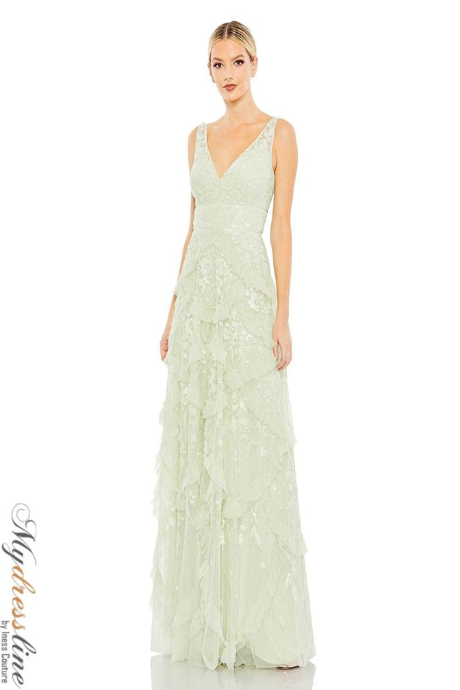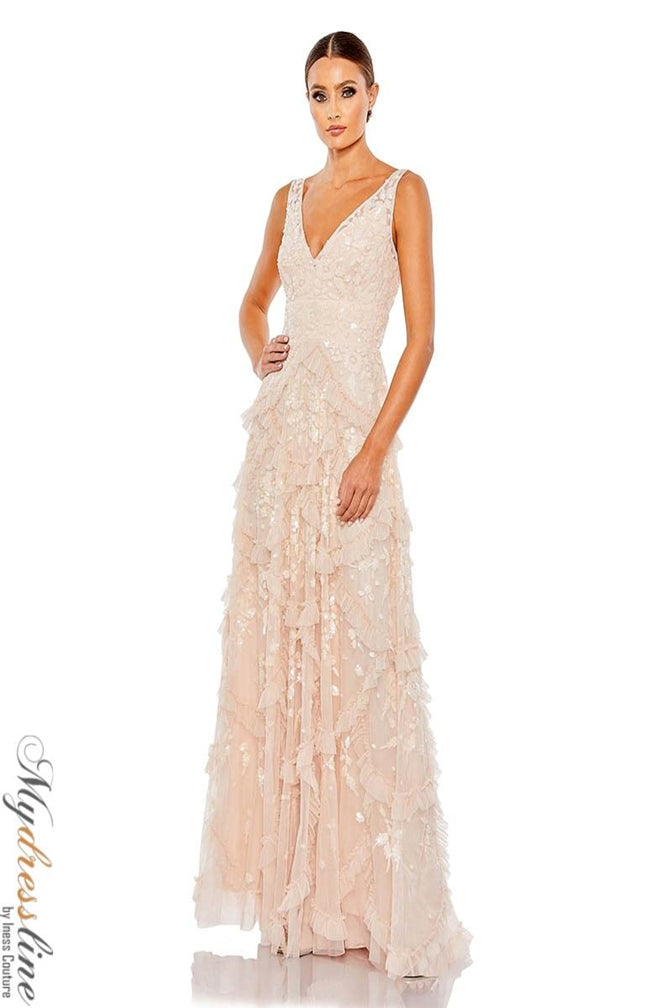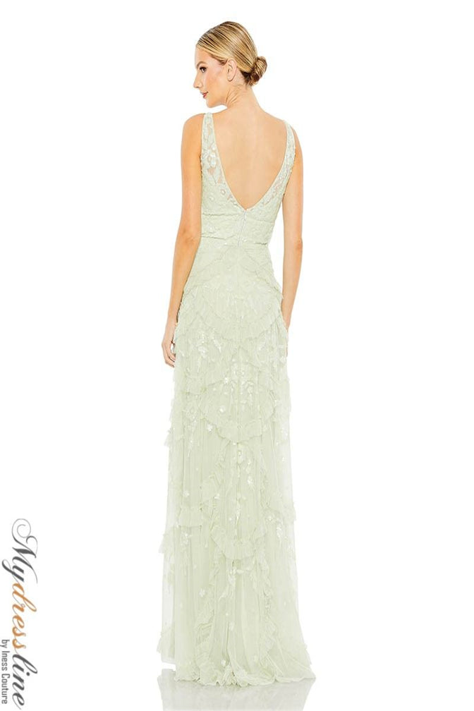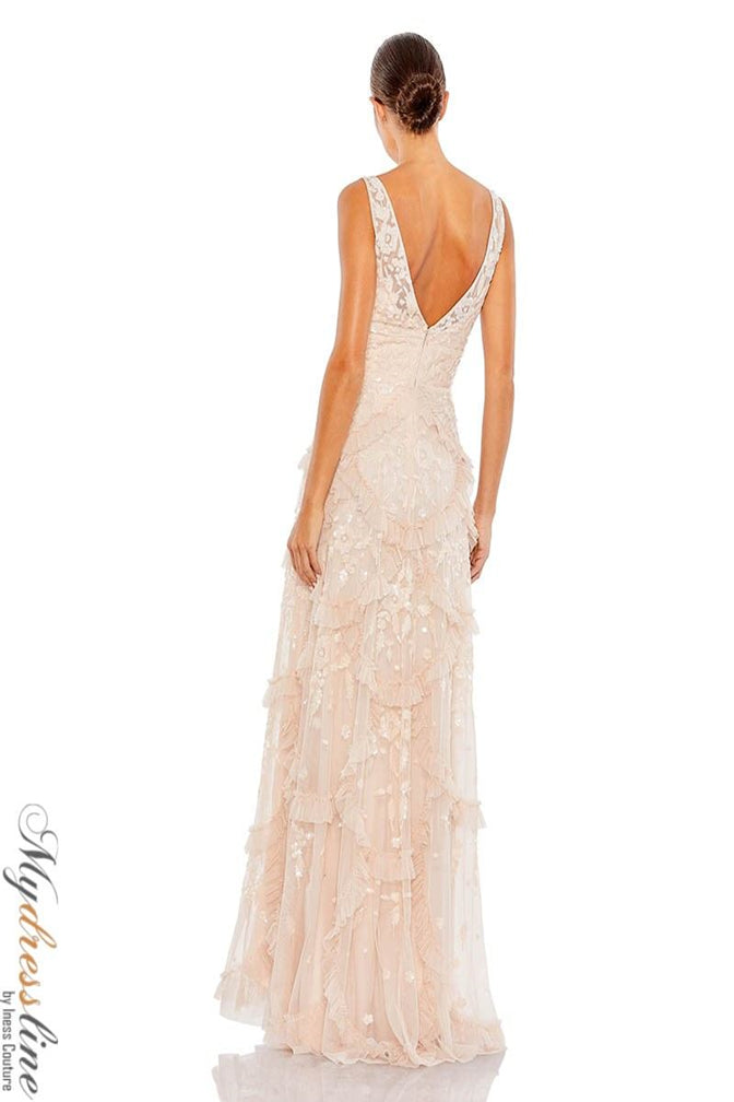 Eleve su conjunto de noche con el Mac Duggal 9162, una obra maestra diseñada para cautivar. Este vestido largo de columna, elaborado con lentejuelas brillantes entrelazadas con tul etéreo, se desliza graciosamente sobre su silueta, creando un resplandor fascinante con cada movimiento. El favorecedor escote en V y el corte sin mangas resaltan su forma elegante, mientras que los delicados volantes introducen un sutil toque romántico. Diseñado para la belleza y la comodidad, su discreta cremallera trasera garantiza un ajuste perfecto para que pueda bailar toda la noche con confianza. Abrace la sofisticación y permita que esta creación de Mac Duggal sea su declaración en cada ocasión inolvidable.