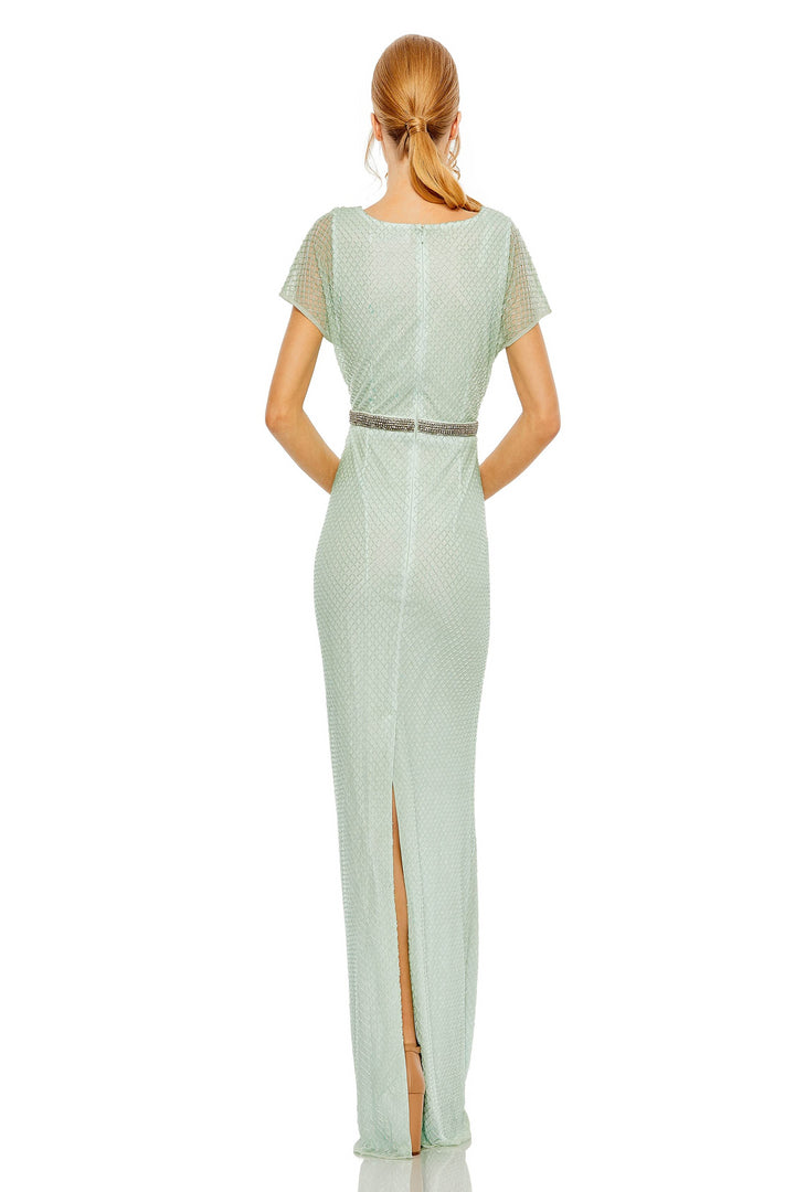 Sumérgete en el lujo refinado con el Mac Duggal 93994, un impresionante vestido de noche diseñado para elevar tu presencia en cualquier ocasión especial. Elaborado con intrincadas cuentas a lo largo de un favorecedor escote en V, este vestido de columna cae graciosamente hasta el suelo, su silueta elegante realzada por una atrevida abertura que añade un toque de atracción. Las delicadas mangas cortas suavizan el aspecto, mientras que la discreta cremallera trasera garantiza una colocación sin esfuerzo. Perfecto para la madre de la novia o noches memorables, este vestido largo encarna sofisticación y elegancia atemporal, permitiéndote moverte con confianza y gracia en cada momento preciado.