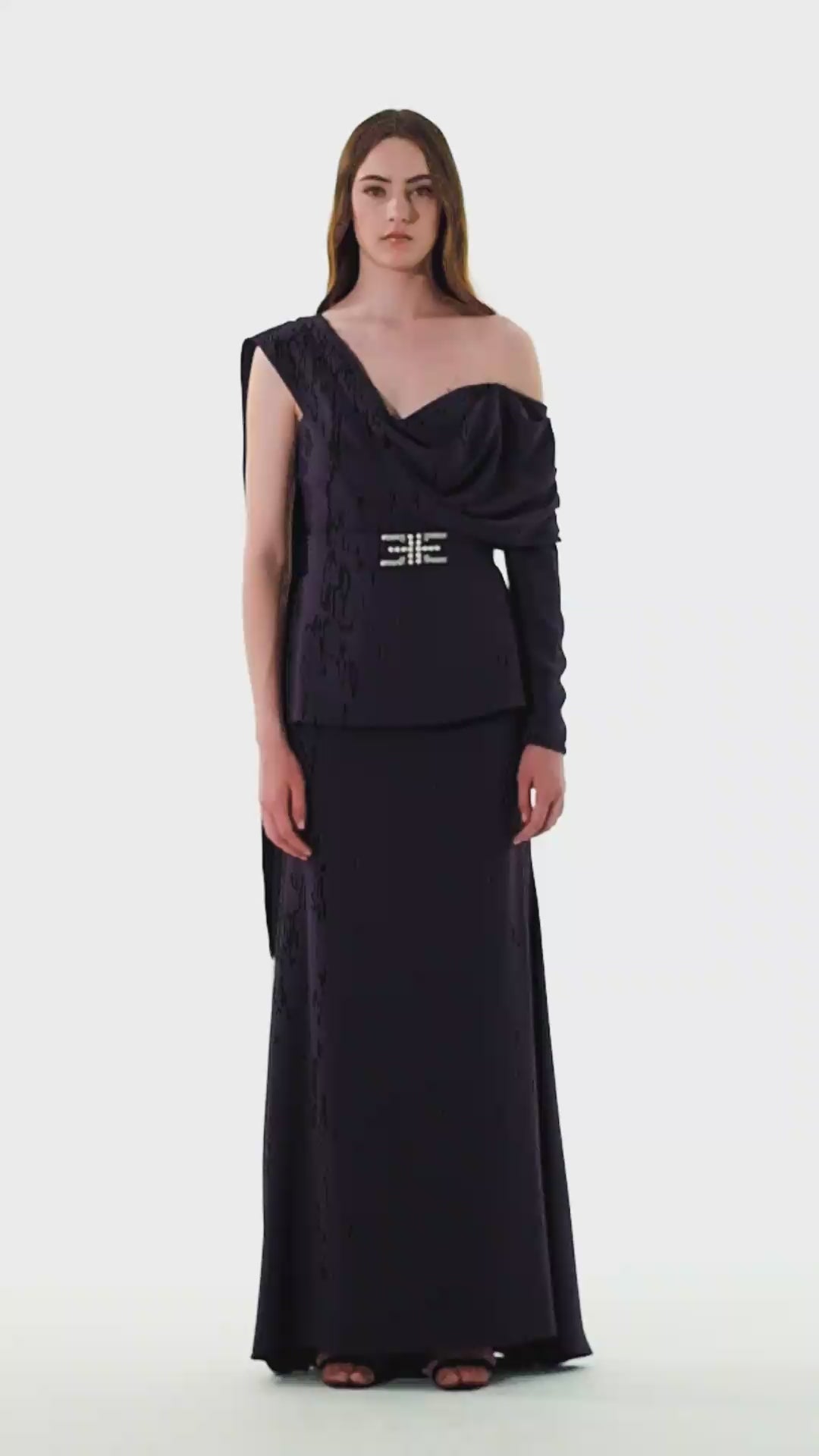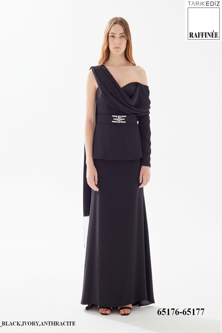 Eleve su noche con el Tarik Ediz 65176, un magistral vestido de dos piezas esculpido en un lujoso crepe que se desliza sin esfuerzo sobre su silueta. Este lujoso vestido columna presenta un llamativo escote de un hombro y una sola manga, ofreciendo un equilibrio seductor entre arquitectura moderna y feminidad grácil. Un delicado cinturón autoajustable ajusta la cintura, realzando sus curvas naturales y añadiendo un sutil acabado romántico. El diseño de longitud completa cae elegantemente con cada paso, y el discreto cierre de cremallera en la espalda garantiza un ajuste impecable. Perfecto para soirées formales, este conjunto promete una presencia imponente que cautiva y encanta desde el primer vistazo.