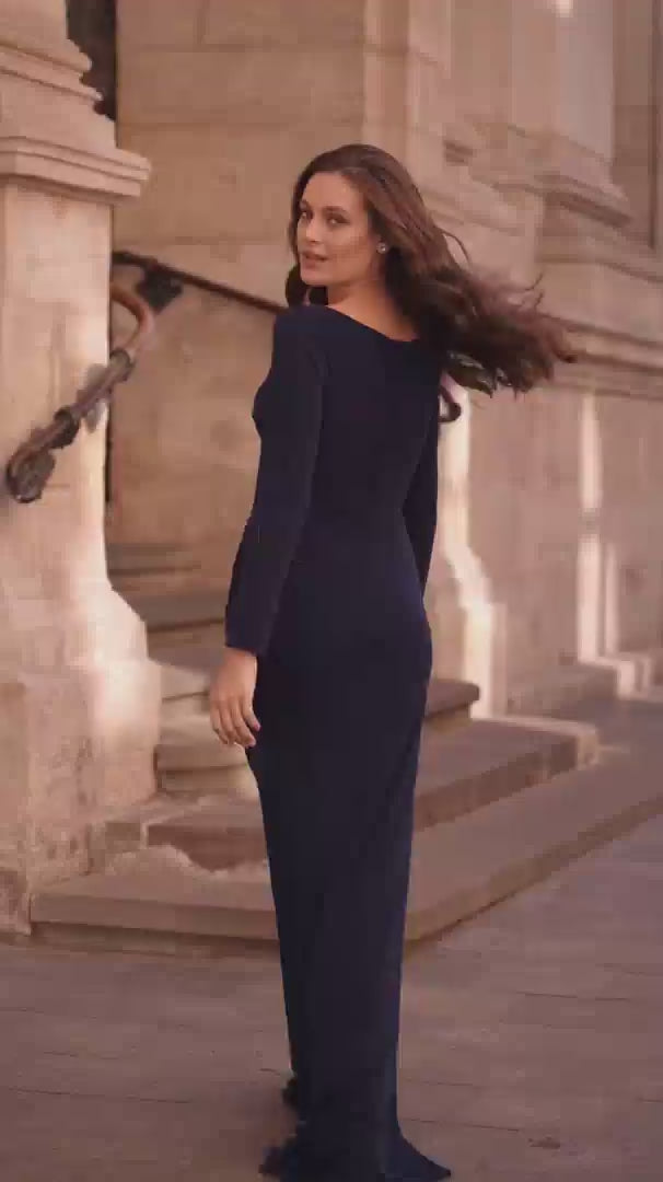 Sumérgete en una noche de elegancia refinada con el La Femme 29184 de la colección Primavera 2025. Elaborado en un lujoso tejido de jersey, este largo y ceñido vestido contornea sin esfuerzo tu silueta mientras ofrece un elegante drapeado que se mueve contigo. El sofisticado escote en V y las mangas largas crean un marco atemporal y favorecedor, perfecto para una madre de la novia o cualquier evento distinguido. Un cierre de cremallera expertamente confeccionado garantiza un acabado elegante, realzando el aspecto suave y pulido del vestido. Diseñado para celebrar tus curvas con lujo discreto, este vestido te envuelve en confianza y compostura, haciendo que cada momento sea inolvidable.