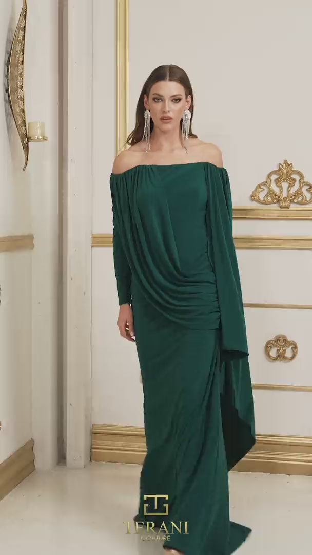 Eleve su conjunto de noche con el Terani Couture 252M5322, un impresionante vestido ajustado meticulosamente elaborado con lujosa tela de jersey que contornea su silueta con sublime gracia. Este largo vestido sin tirantes irradia elegancia con su dramático diseño drapeado y delicados adornos florales en 3D de cuentas que caen artísticamente a lo largo de un hombro, culminando en una rosa de cuentas hipnotizante que cautiva desde todos los ángulos. La cremallera trasera suave garantiza un ajuste impecable, mientras que el detalle de la manga larga añade un toque refinado a este conjunto sofisticado. Perfecto para madres de la novia que buscan glamour atemporal o cualquier persona que desee una pieza llamativa, este vestido transforma su presencia en una visión inolvidable de lujo distinguido.