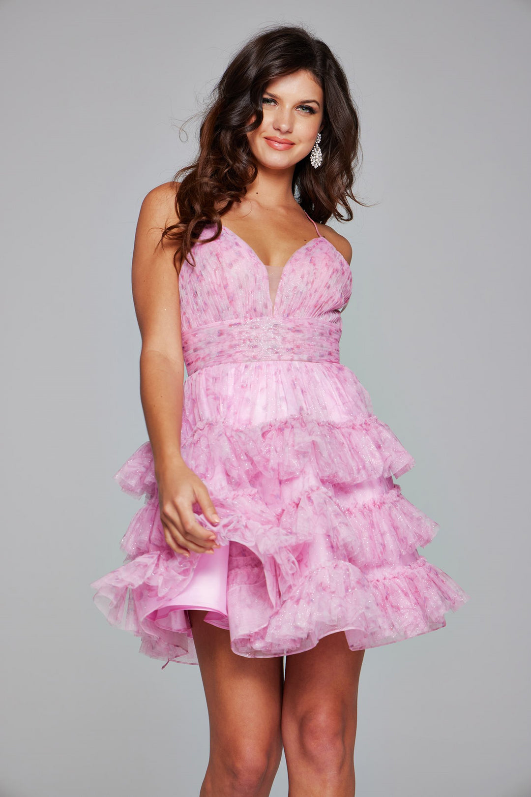 Sumérgete en la elegancia sin esfuerzo con el Jovani 36844, un magistral vestido de cóctel diseñado para elevar tu guardarropa nocturno. Confeccionado en delicado tul, esta silueta corta de línea A se desliza suavemente en capas escalonadas, realzadas por plisados intrincados que añaden profundidad y movimiento. El escote en V enmarca graciosamente tu escote, mientras que las correas delgadas proporcionan una sensación abierta y refinada. Una discreta cremallera en la parte trasera garantiza un ajuste perfecto, permitiéndote deslizarte por tu noche con confianza y aplomo. Perfecto para aquellos que desean hacer una declaración sofisticada, este vestido encarna el lujo moderno con un toque etéreo y ligero que deja una impresión memorable.