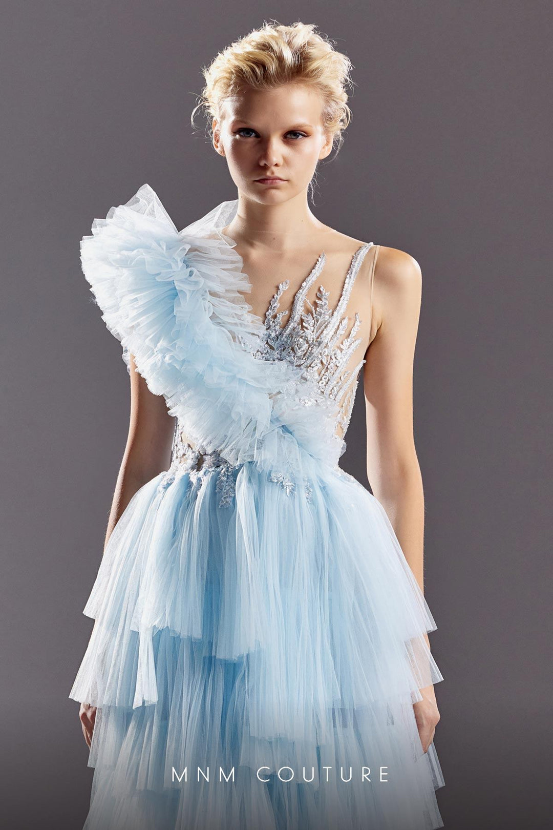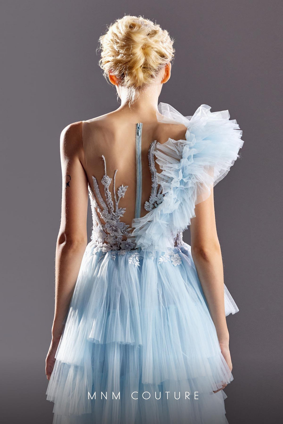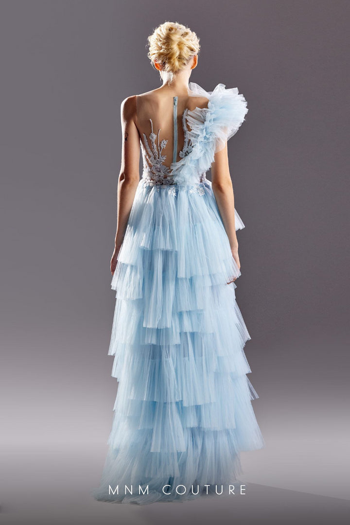 Pise el escenario con el MNM Couture G1528, una expresión magistral de lujo refinado de la colección de noche Couture de otoño de 2023. Confeccionado en tul delicado, este largo vestido de línea A de capas flota graciosamente con cada movimiento, envolviéndote en una silueta etérea. El escote de un hombro y el diseño sin mangas revelan la cantidad justa de piel, creando un equilibrio seductor entre la elegancia y la modernidad. Asegurado con una discreta cremallera en la espalda, este vestido garantiza un ajuste impecable mientras cautivas todas las miradas. Eleve su noche con un vestido que combina una artesanía intrincada y un estilo sofisticado, diseñado para crear recuerdos inolvidables.